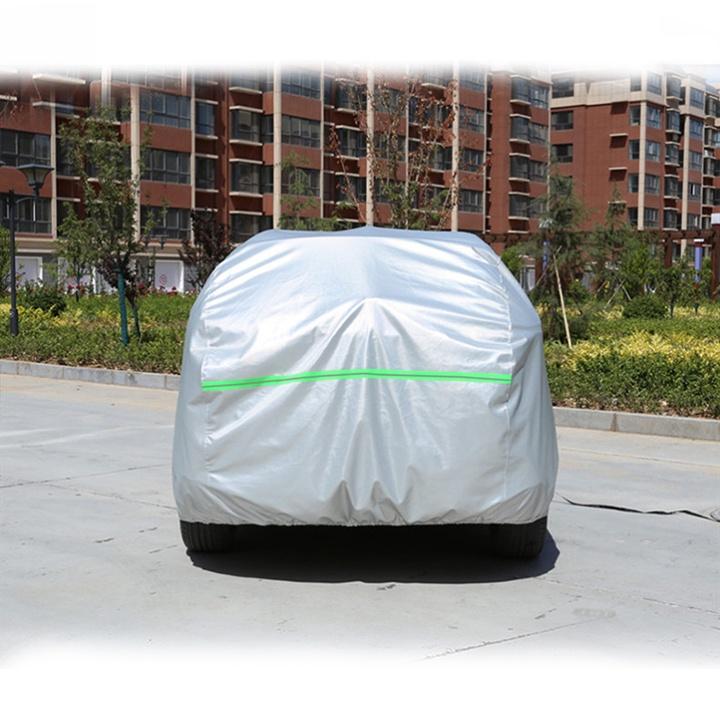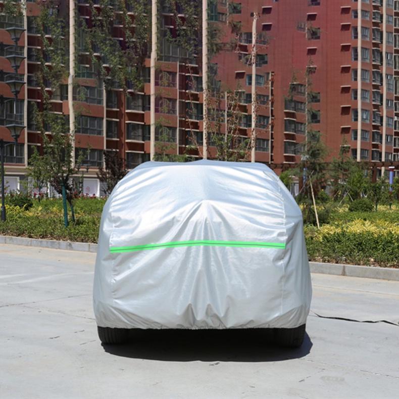 Bạt phủ xe ô tô 7 chỗ 3 lớp tráng nhôm cách nhiệt, chống nóng, chống thấm, chống bụi bẩn - Bạt phủ xe có mặt ngoài là chất liệu vải PEVA tráng nhôm phản