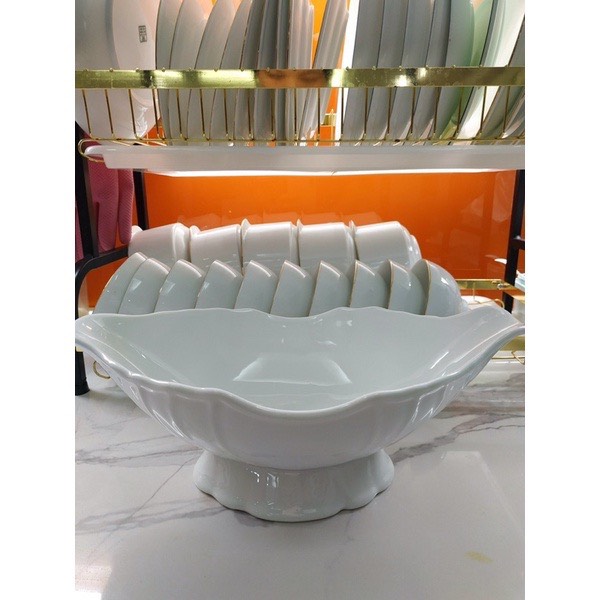 - Bát thuyền đựng gà, hoa quả được nung ở nhiệt độ 1300 độ C, loại bỏ hoàn toàn tạp chất, đảm bảo an toàn cho sức khỏe, nước men láng bóng, hàng men trắng cao cấp loại 1