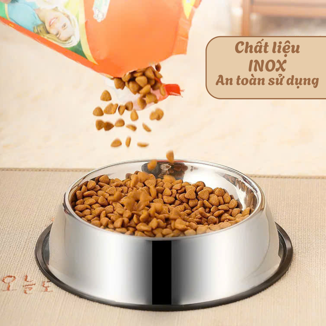 2023/05/18 BÁT ĐỰNG THỨC ĂN VÀ NƯỚC UỐNG CHO THÚ CƯNG - INOX KHÔNG GỈ - Bát inox trơn - Bát tròn lòng sâu đựng được nhiều thức ăn - Đế bám chống trượt hỗ