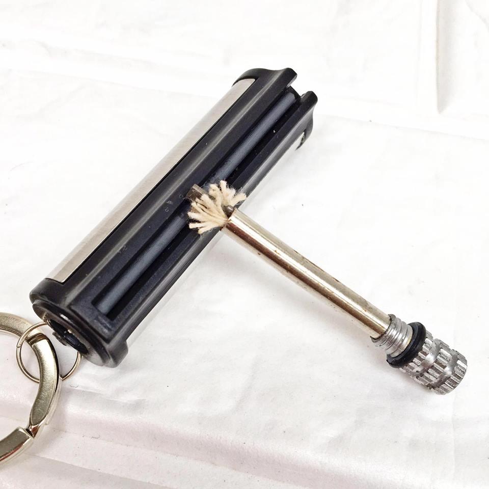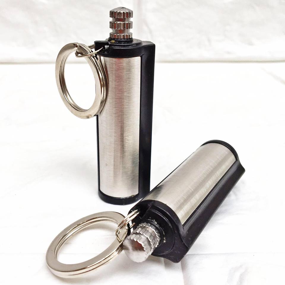 Hột quẹt bật lửa móc khóa diêm xăng sinh tồn hình Trụ Tròn - xài xăng - Nguyên liệu: kim loại nguyên khối – Kích thước: Chiều cao: 5 cm, Chiều rộng: 1.3 cm –