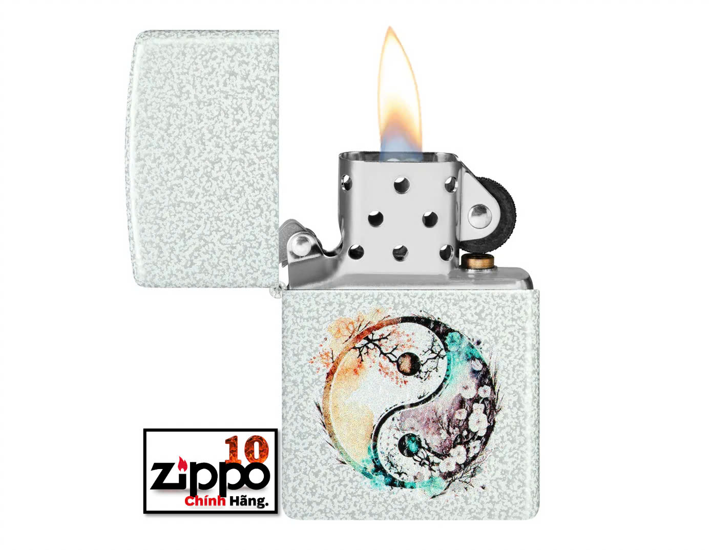 Âm và Dương được thể hiện đẹp mắt trên chiếc bật lửa Glacier cổ điển này. Biểu tượng cổ xưa bao gồm những bông hoa và cành cây tinh tế trong thiết kế Hình ảnh màu dịu nhẹ. Được đóng gói trong hộp quà tặng. Để có hiệu suất tối ưu, hãy đổ nhiên liệu bật lửa Zippo.