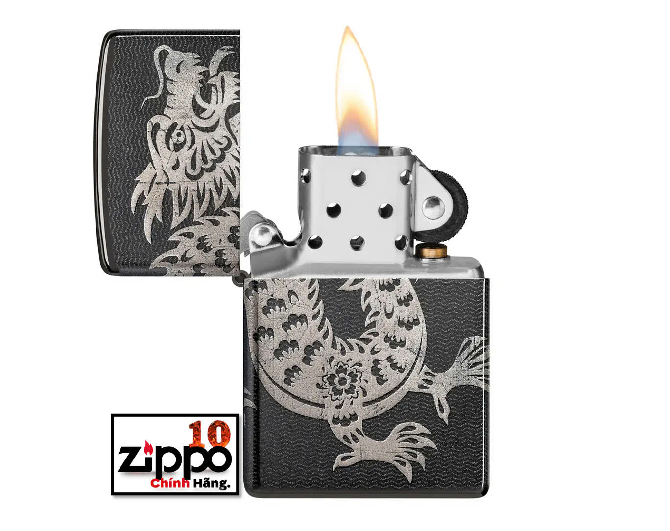 Một con rồng Châu Á truyền thống chỉ huy mọi mặt của chiếc bật lửa cổ điển High Polish Black này trong thiết kế Photo Image 360° phức tạp. Được đóng gói trong hộp quà tặng. Để có hiệu suất tối ưu, hãy đổ nhiên liệu bật lửa Zippo.