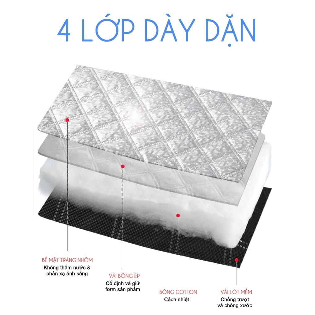 Size 150x100 với 4 lớp: Lớp vải lót mềm - Vải bông ép - Bông cotton - Lớp tráng nhôm