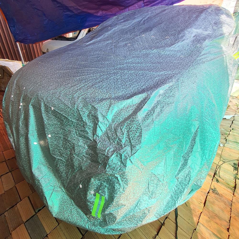 ⍣ Vải Bạt phủ xe được làm bằng vải polyster cao cấp. Sản phẩm được tráng một lớp keo chống thấm nước , chống nắng xiên.