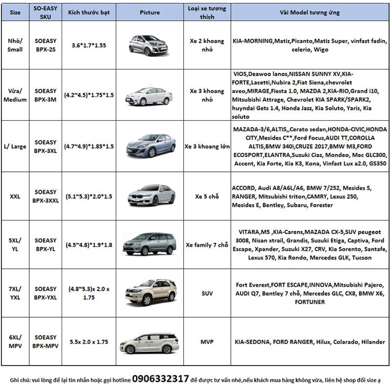 Bạt Phủ Ô Tô CAO CẤP 3 lớp Cách Nhiệt, Bạt phủ xe ô tô, Bạt che ô tô 4 chỗ, 5 chỗ, 7 chỗ và Bán Tải + 1 bộ sản phẩm bao gồm: