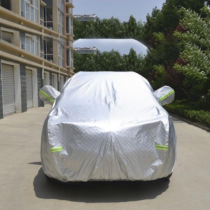 Bạt phủ xe ô tô 7 chỗ 3 lớp tráng nhôm cách nhiệt, chống nóng, chống thấm, chống bụi bẩn - Bạt phủ xe có mặt ngoài là chất liệu vải PEVA tráng nhôm phản