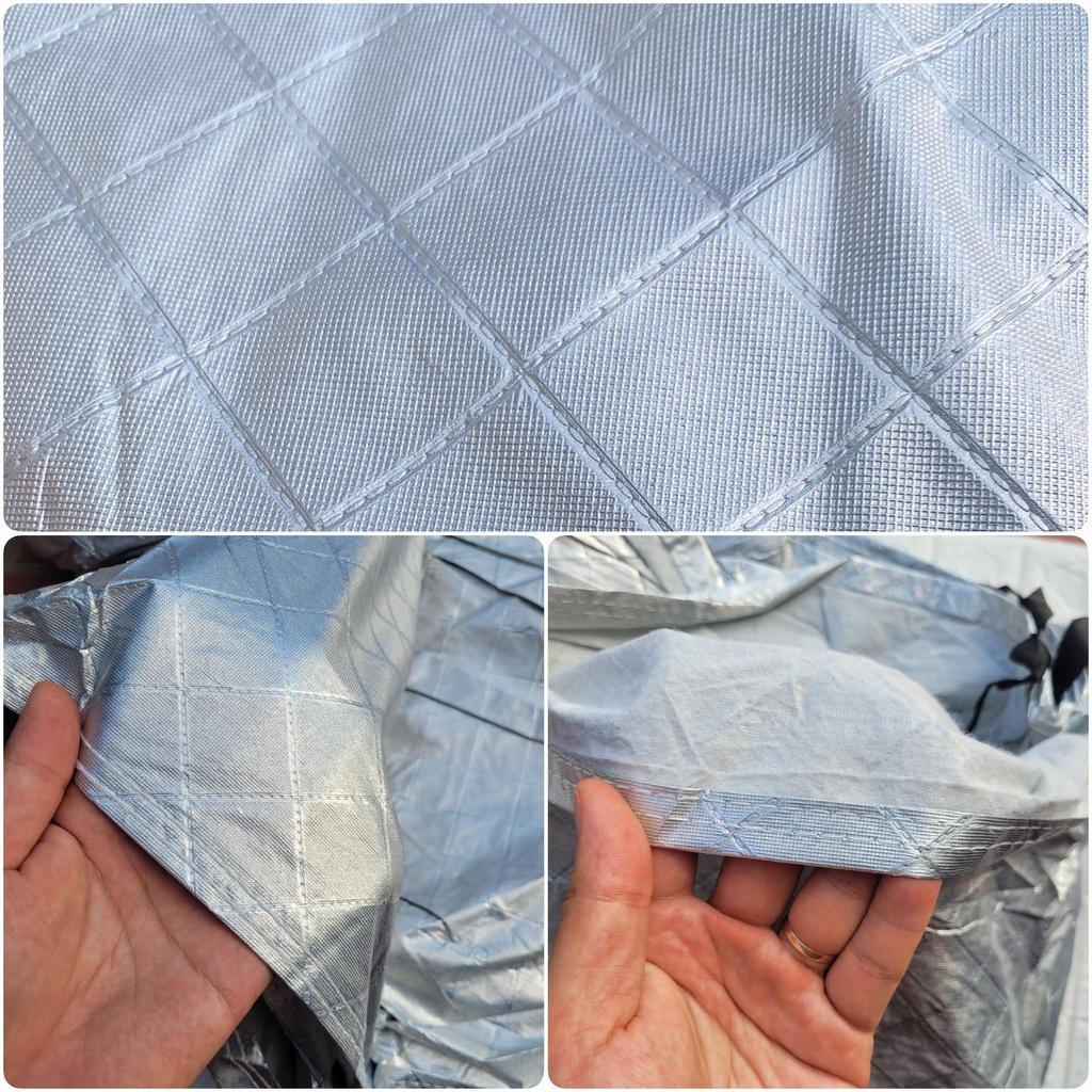 Bạt phủ xe ô tô bán tải 3 lớp tráng nhôm cách nhiệt, chống nóng, chống thấm, chống bụi bẩn - Bạt phủ xe có mặt ngoài là chất liệu vải PEVA tráng nhôm phản