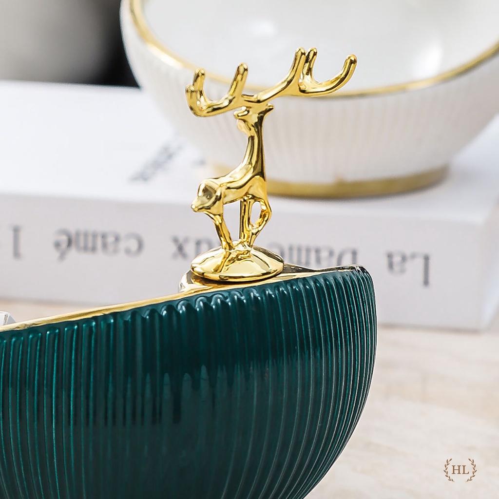 ✨Bát Sứ Đựng Kẹo - Chìa Khóa - Phụ Kiện Decor 2022 | Âu Sứ Decor Kẻ Vàng Kim Vân Nổi Hình Hươu Mạ Vàng ( Hàng Có Sẵn )