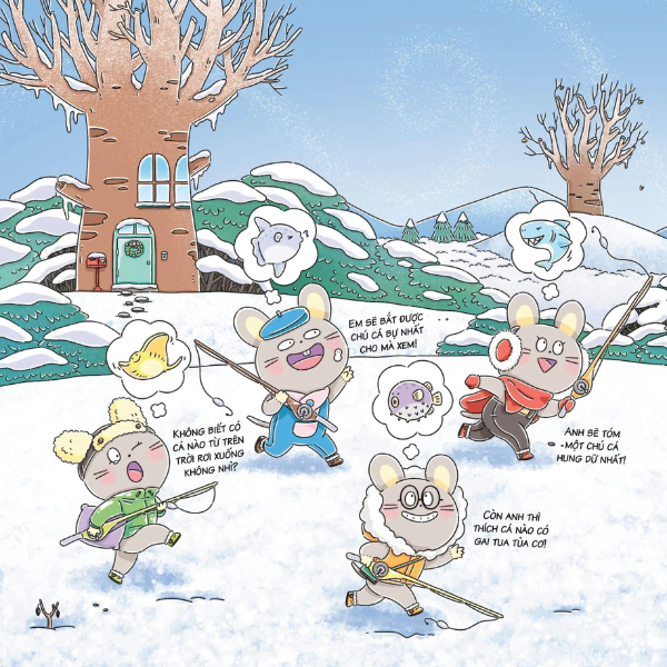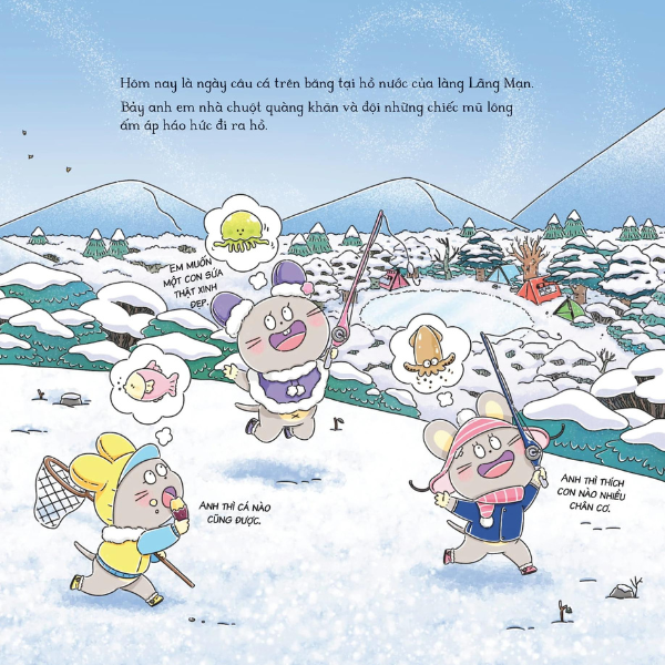Trong một ngày lạnh giá với gió thổi vù vù, bảy anh em nhà chuột ra hồ làng Lãng Mạn để câu cá trên băng. Rồi từ một sự cố tình cờ mà tất cả đã được tận hưởng vị ngon lãng mạn của mùa đông tuyết trắng.