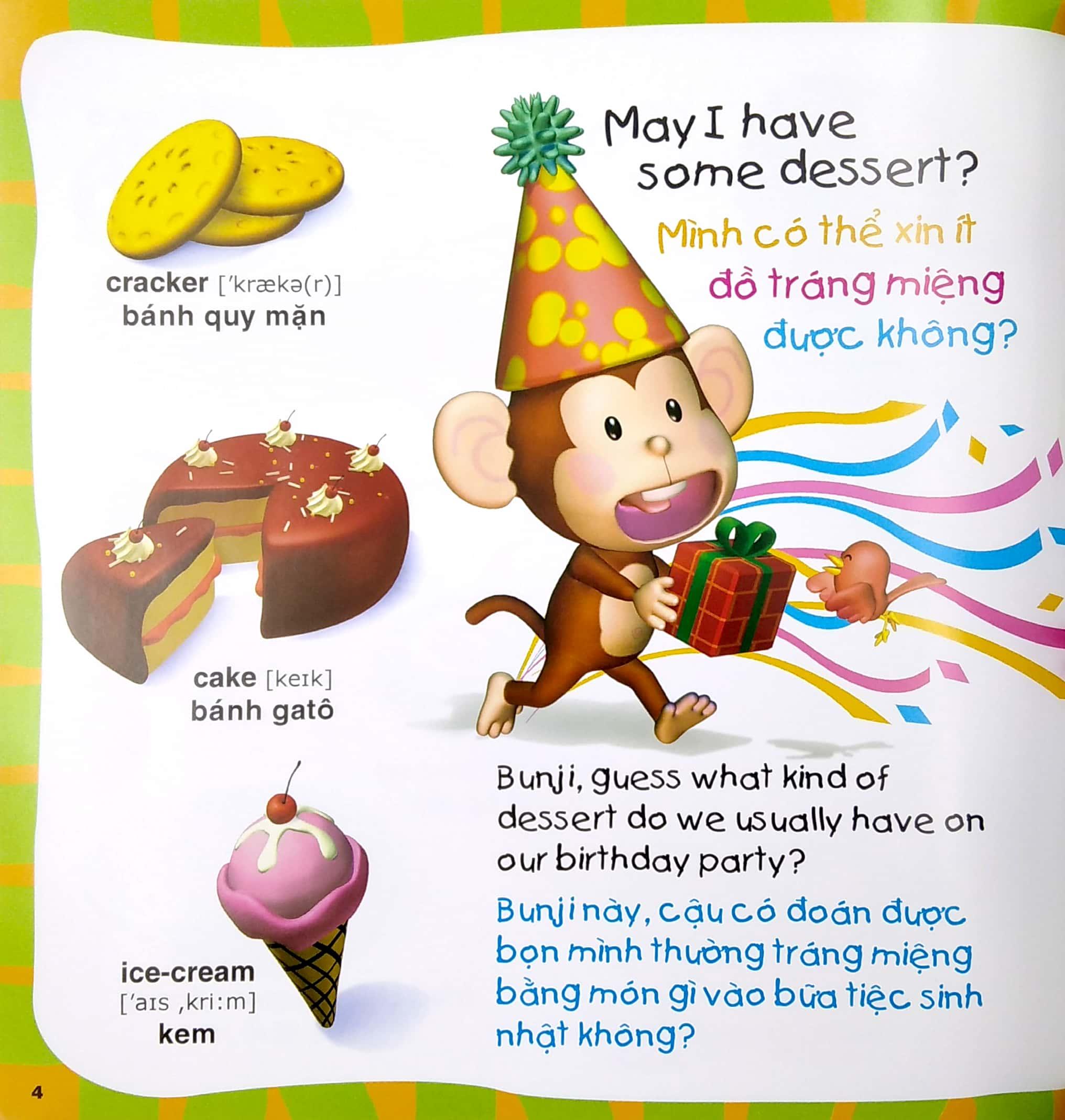 Hai bạn nhỏ Mony và Bunji sẽ giúp các bé làm quen với những từ tiếng Anh chỉ những đồ vật, sự vật quen thuộc trong cuộc sống hằng ngày. Với 128 hình minh họa đẹp, sinh động được chia thành lư nhóm, các bé sẽ dễ dàng nhớ được những từ này. Hãy cùng vui học với những câu hỏi, trò chơi và hình dán thú vị nhé!