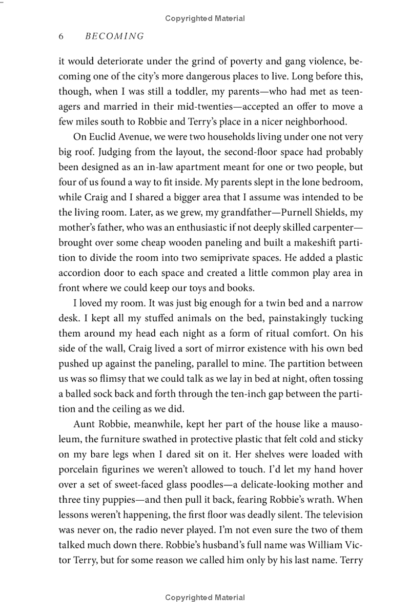 In her memoir, a work of deep reflection and mesmerizing storytelling, Michelle Obama invites readers into her world, chronicling the experiences that have shaped her -- from her childhood on the South Side of Chicago to her years as an executive balancing the demands of motherhood and work, to her time spent at the world's most famous address. With unerring honesty and lively wit, she describes her triumphs and her disappointments, both public and private, telling her full story as she has lived it -- in her own words and on her own terms.