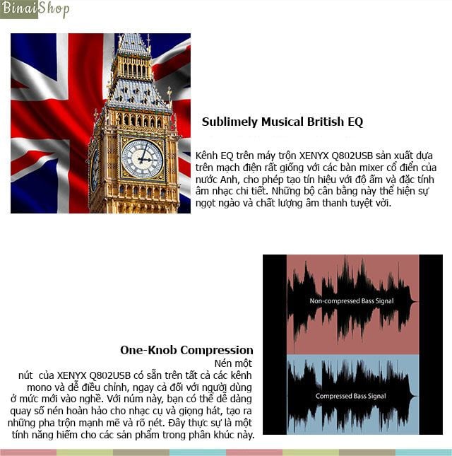 - Bàn mixer nhỏ Behringer XENYX Q802S với 8 đầu vào (2 mic, 2 stereo) cho phép tạo được âm thanh chất lượng cao nhờ có XENYX Mic Preamp trên bo mạch và hệ thống EQ của