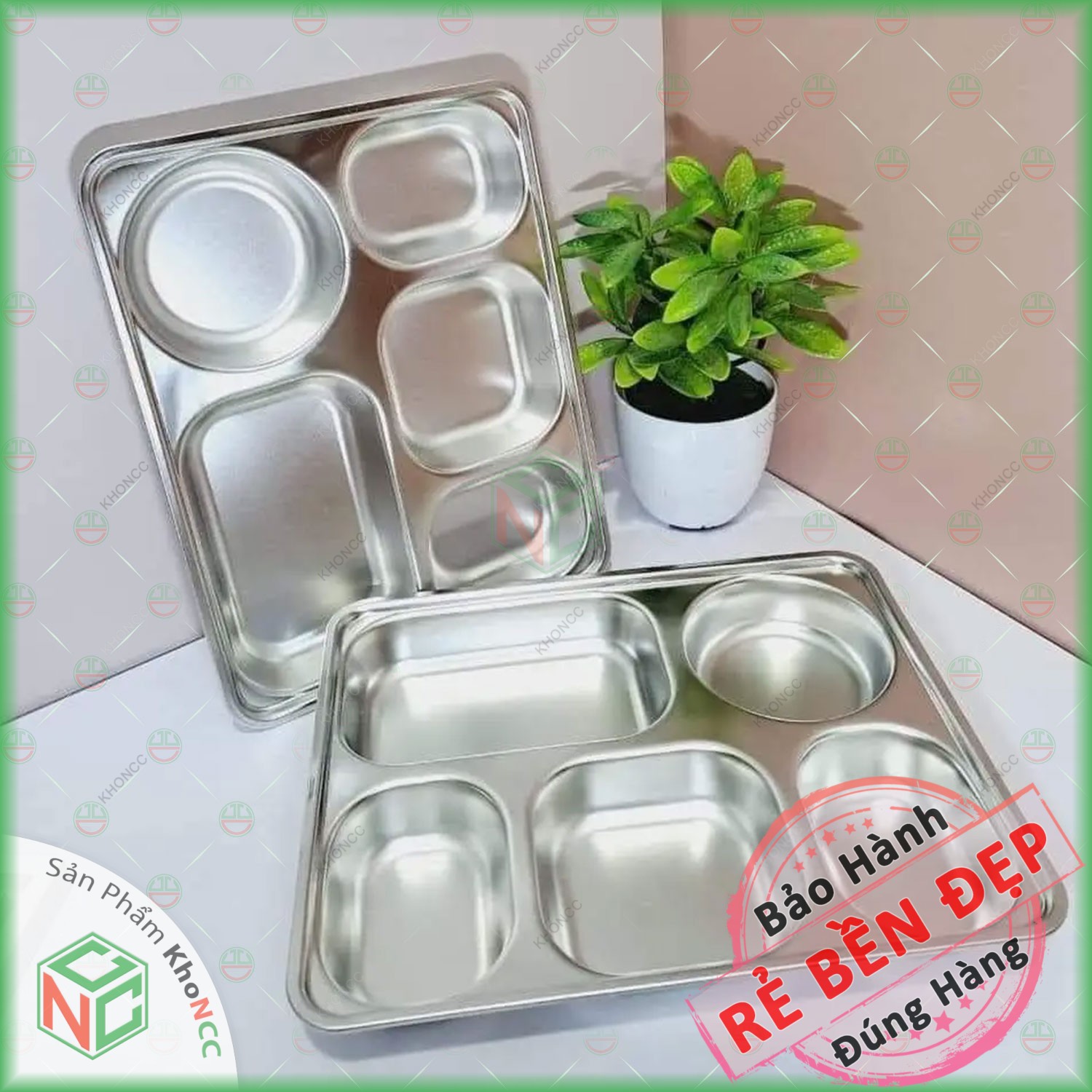 ✨(Bền Bỉ) Khay Cơm Inox 5 Ngăn Tiện Dụng KhoNCC Hàng Chính Hãng - Chống Gỉ An Toàn Sạch Sẽ - Không Vỡ Phù Hợp Cho Cả Trẻ - KLM-KCI5N