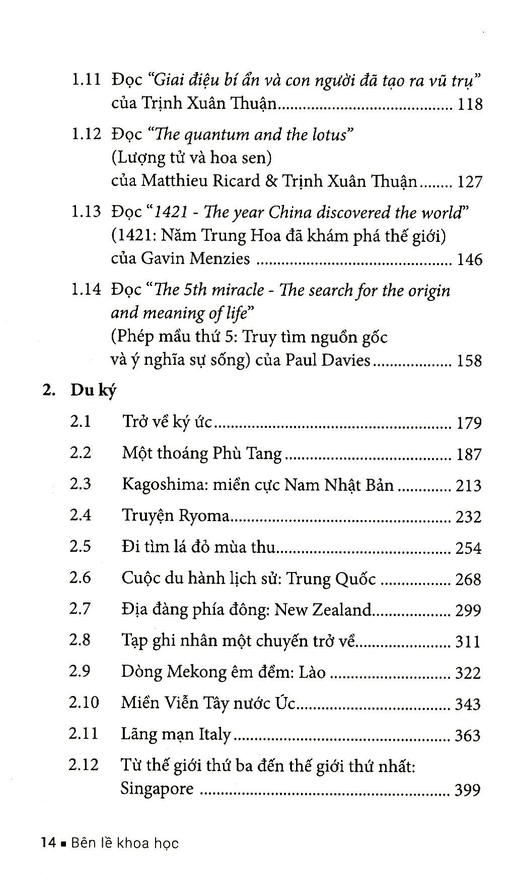Cuốn sách gồm hai phần chính: Phần 1: Khoa học và Giáo dục, và Phần 2: Du ký.