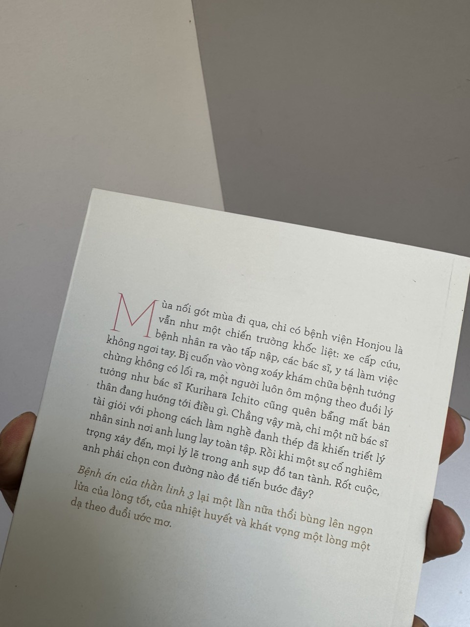 Mùa nối gót mùa đi qua, chỉ có bệnh viện Honjou là vẫn như một chiến trường khốc liệt: xe cấp cứu, bệnh nhân ra vào tấp nập, các bác sĩ, y tá làm việc không ngơi tay. Bị cuốn vào vòng xoáy khám chữa bệnh tưởng chừng không có lối ra, một người luôn ôm mộng theo đuổi lý tưởng như bác sĩ Kurihara Ichito cũng quên bẵng mất bản thân đang hướng tới điều gì. Chẳng vậy mà, chỉ một nữ bác sĩ tài giỏi với phong cách làm nghề đanh thép đã khiến triết lý nhân sinh nơi anh lung lay toàn tập. Rồi khi một sự cố nghiêm trọng xảy đến, mọi lý lẽ trong anh sụp đổ tan tành. Rốt cuộc, anh phải chọn con đường nào để tiến bước đây?