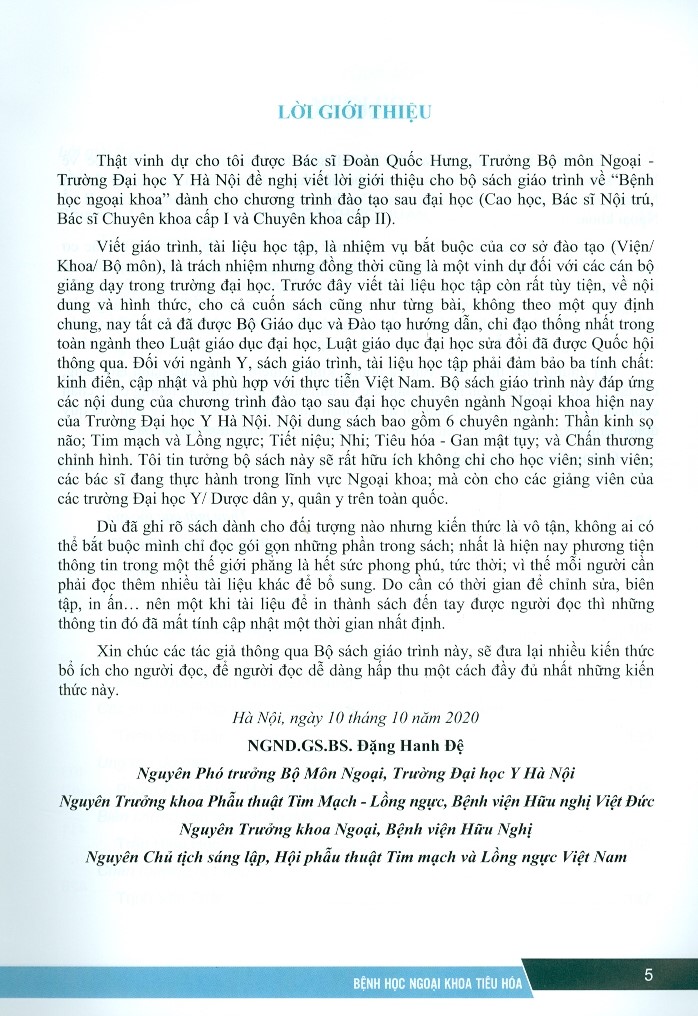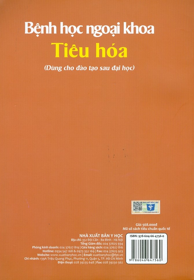 Mua tại TiktokSách “Bệnh học Ngoại khoa Tiêu hóa là giáo trình để giảng dạy sau đại học về Ngoại khoa. Nội dung sách bao hàm toàn bộ nội dung chương trình đào tạo lý thuyết Ngoại Tiêu hóa cho các Bác sĩ Nội trú, Cao học, Chuyên khoa I, Chuyên khoa II về Ngoại khoa. Các chương, mục của sách được trình bày theo bệnh lý Ngoại khoa của các cơ quan Tiêu hóa. Những kiến thức được trình bày là những kiến thức cơ bản, cập nhật và phù hợp với thực tế của Việt Nam. Để học viên có được những kiến thức một cách hệ thống, nội dung các bài được trình bày thống nhất bao gồm dịch tễ học lâm sàng, giải phẩu, giải phẫu bệnh, sinh lý bệnh, chẩn đoán và điều trị. Các phương pháp chẩn đoán và các phương pháp phẫu thuật là mục tiêu học tập chủ yếu, được trình bày chuyên sâu.