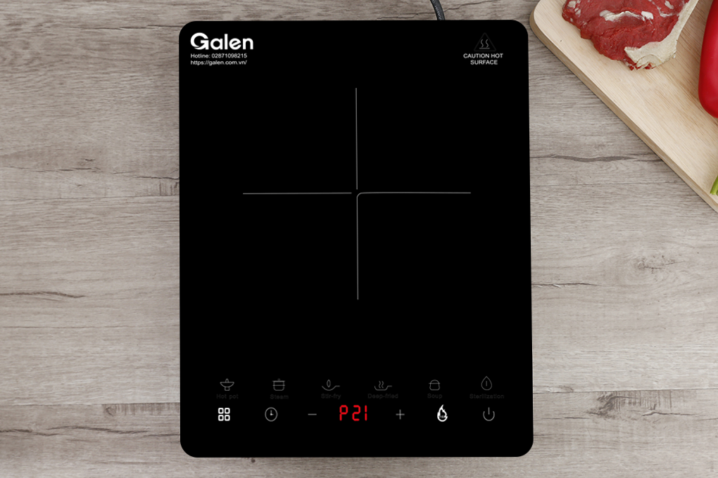 - Bếp điện từ Galen được cấu tạo với chất liệu mặt bếp siêu cường lực, có khả năng tự ngắt điện khi nhiệt độ bếp quá cao hoặc khi không có nồi đặt trên bếp