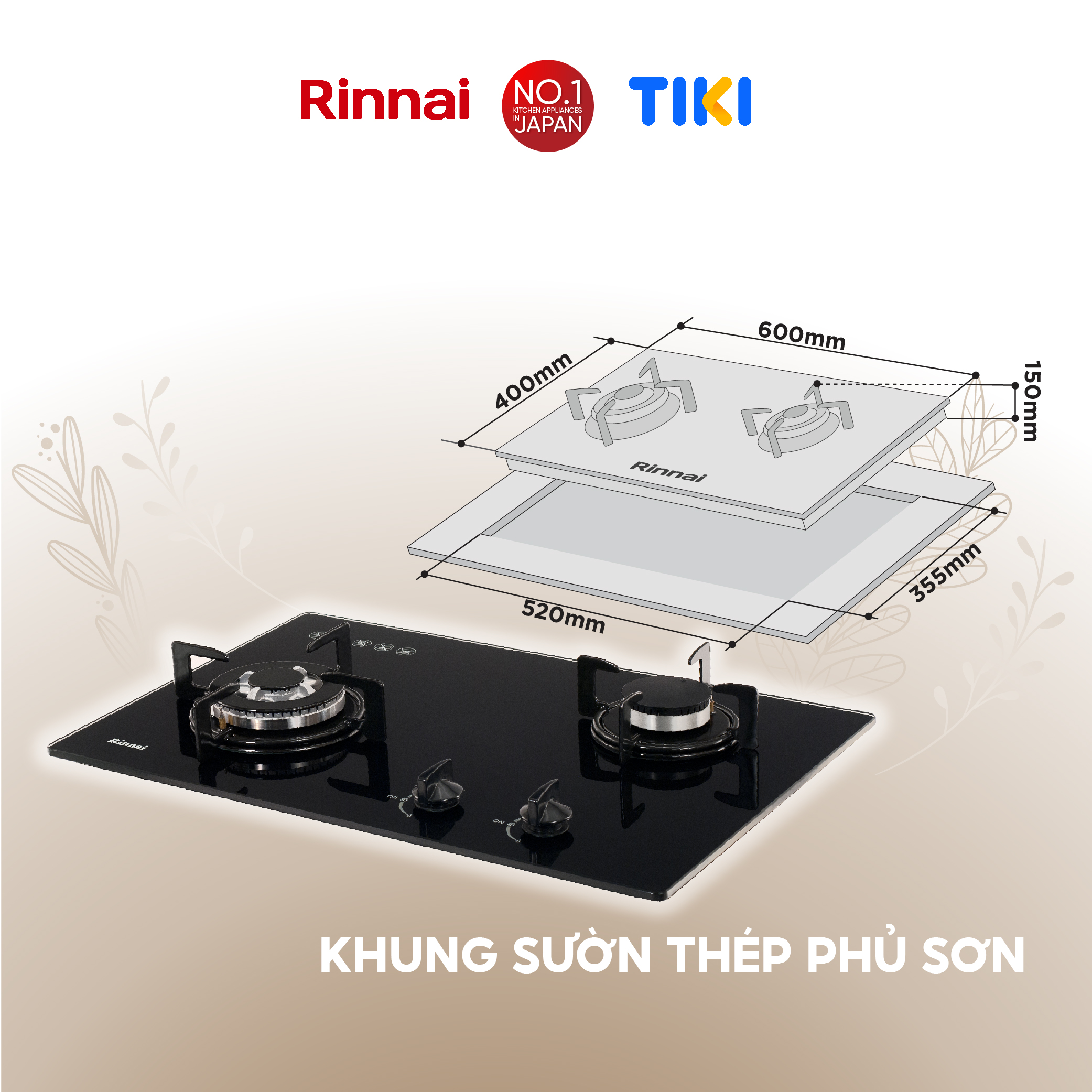 RINNAI chân thành cảm ơn bạn đã quan tâm đến sản phẩm: Bếp gas âm Rinnai RVB-6SDQ(B) mặt bếp kính và kiềng bếp men - Hàng chính hãng.