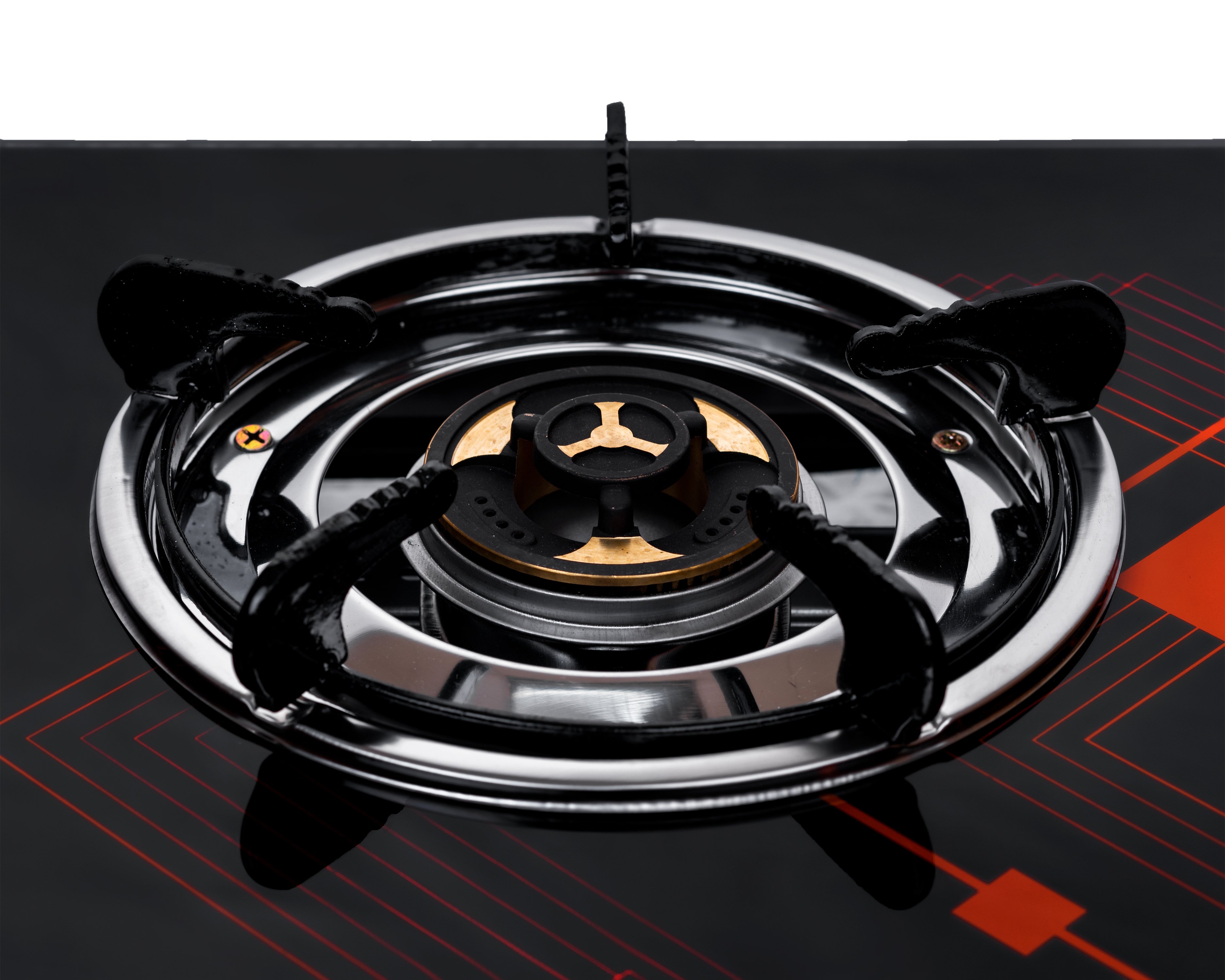 * Mặt kiếng cao cấp chịu lực, chịu nhiệt, thiết kế hoa văn sang trọng; - Thân bếp bằng inox, cao 100 mm; - Kiềng thép sơn tĩnh điện, có chắn gió; - Điếu loe
