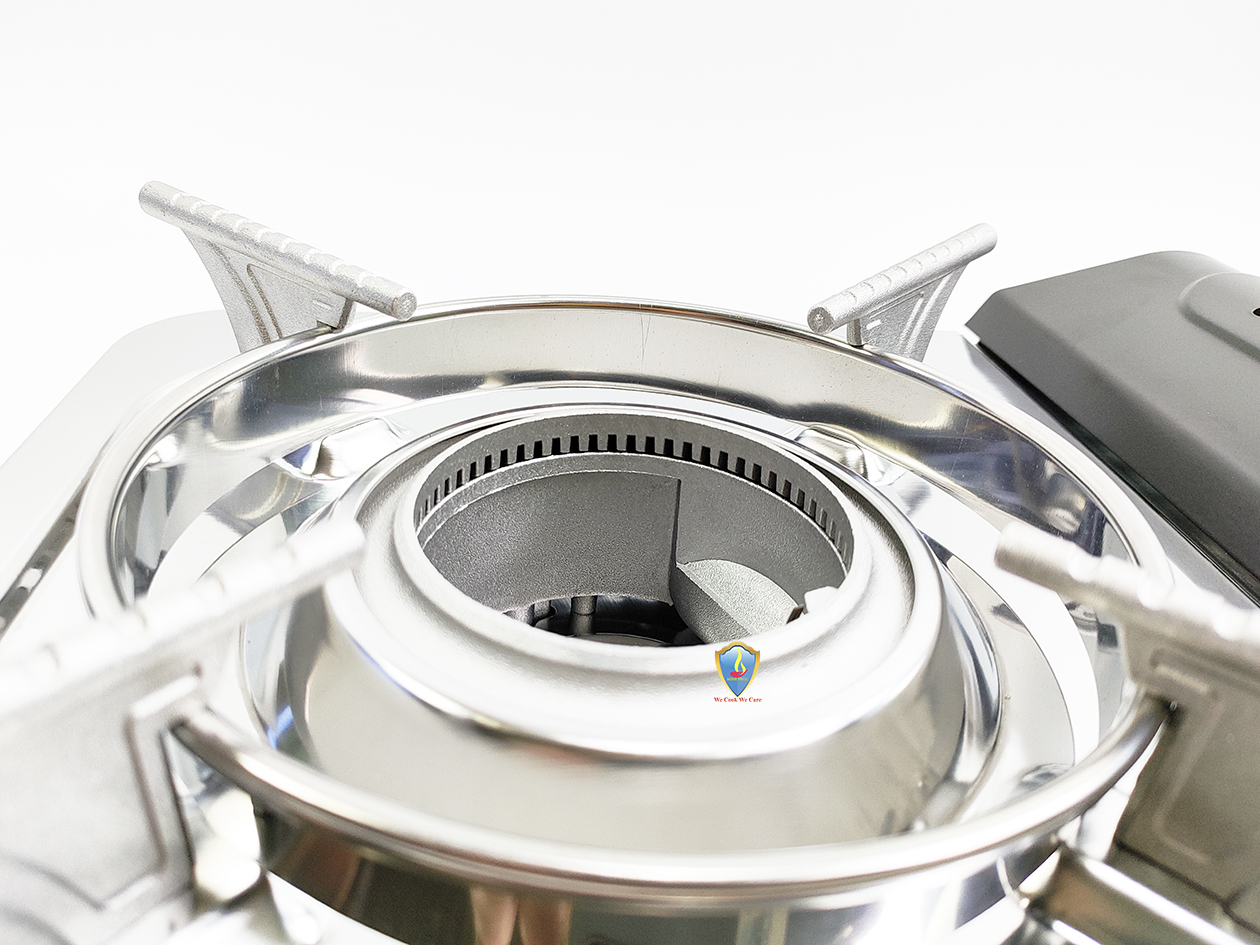 Bếp du lịch sử dụng van ngắt gas an toàn tự động Inline Cut. Bếp sử dụng hệ thống đầu đốt theo tiêu chuẩn JIA (Nhật Bản), kết hợp vòng chắn gió, giúp ngọn lửa