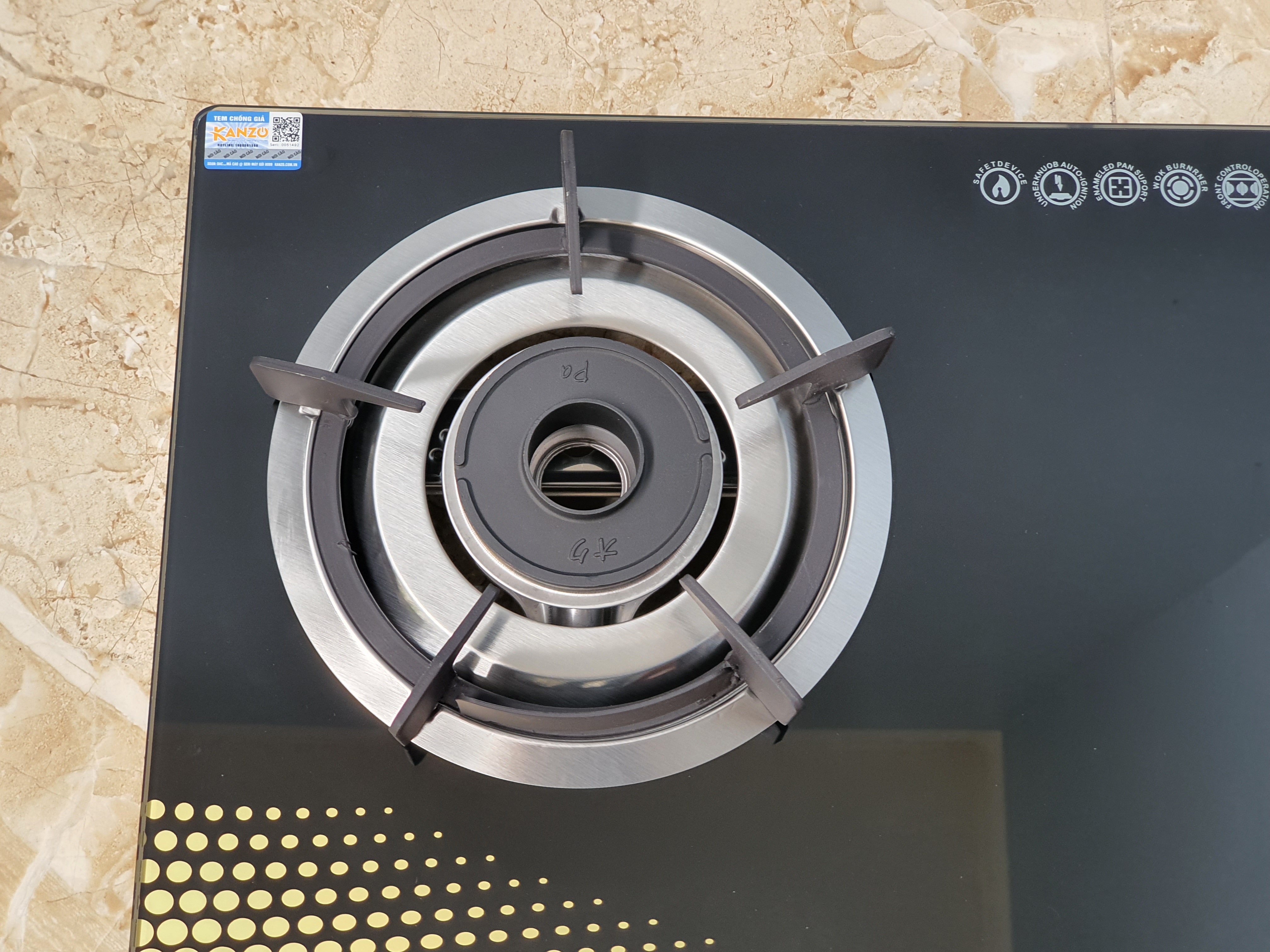 Chi tiết sản phẩm - Khung toàn thân Inox sọc (mờ) + nẹp Decan, - Mặt kính 7Ly -Cường Lực,chịu nhiệt. - Đầu Đốt đồng mũ nguyên khối cho lửa xanh. - Kiềng Gang chắn