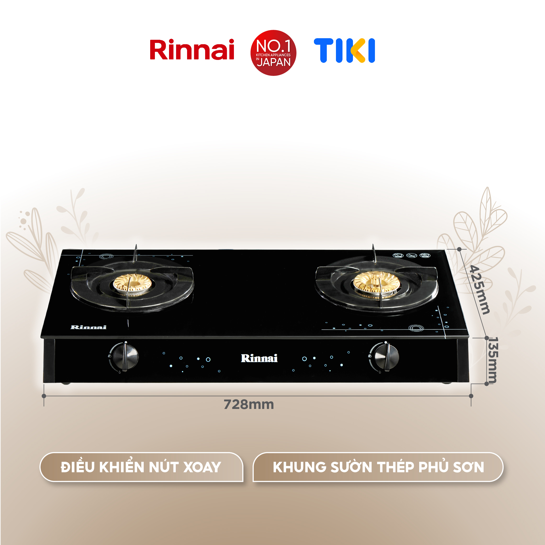 * Mặt kiếng cao cấp chịu lực, chịu nhiệt, thiết kế hoa văn sang trọng; - Thân bếp làm bằng inox chống rỉ sét, cao 60mm; - Núm vặn kiểu Rinnai; - Kiềng thép sơn