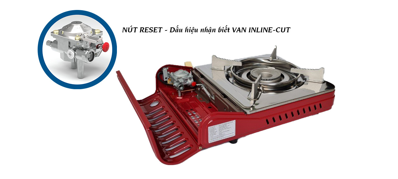 Sản phẩm được trang bị cụm van Inline Cut Thế Hệ Mới, tự động ngắt gas khi áp lực lon gas vượt giới hạn cho phép à đảm bảo an toàn cho người sử dụng.