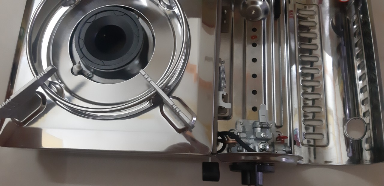 Bếp du lịch sử dụng van ngắt gas an toàn tự động Inline Cut. Bếp sử dụng hệ thống đầu đốt theo tiêu chuẩn JIA (Nhật Bản), kết hợp vòng chắn gió, giúp ngọn lửa