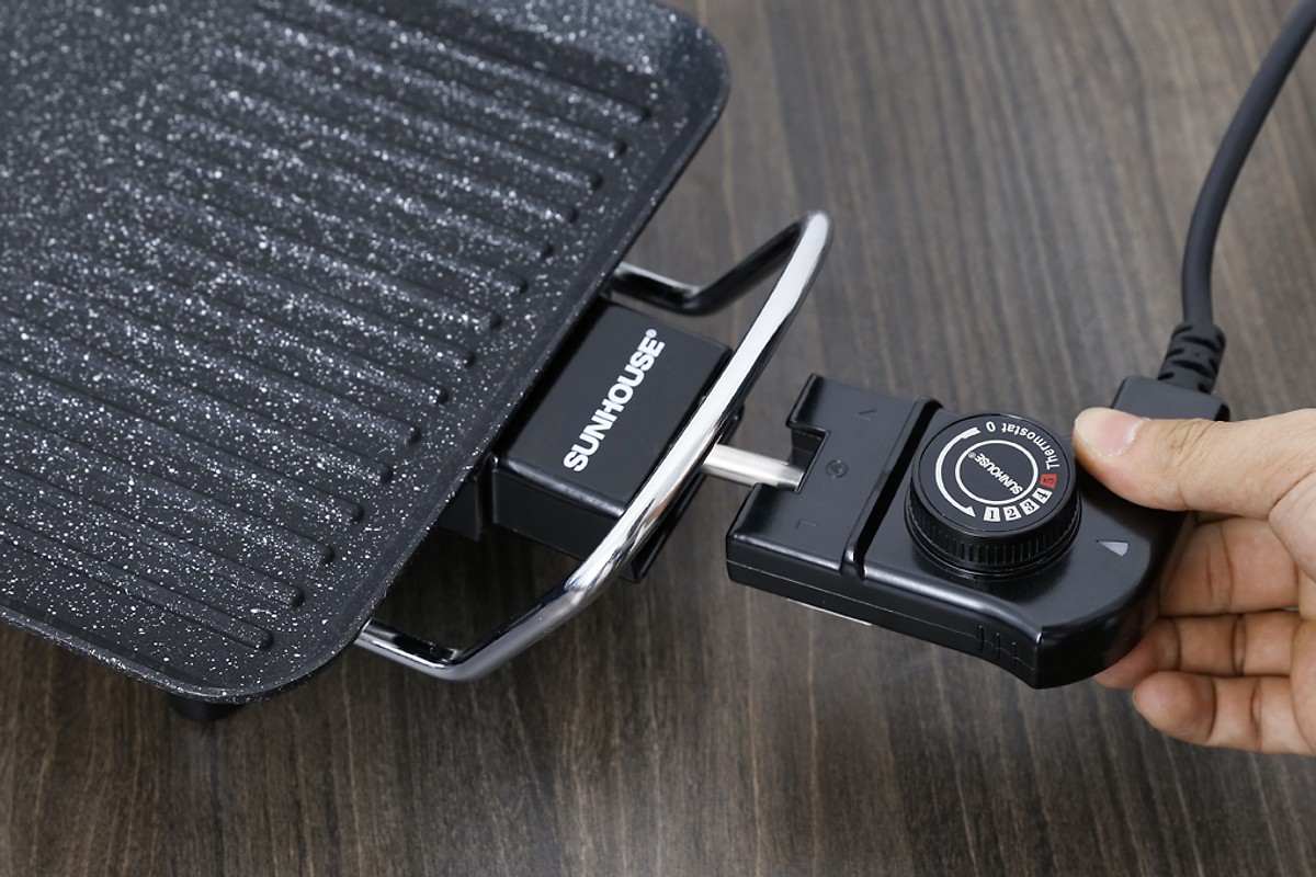 BẾP NƯỚNG ĐIỆN SUNHOUSE SHD4600 Bề mặt phủ chống dính đá hoa cương Whitford (USA) siêu bền kháng khuẩn Tay cầm cách nhiệt Bộ điều chỉnh nhiệt độ linh hoạt, nhiều chế độ Thông số