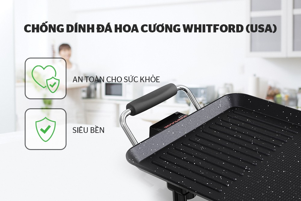 - Bề mặt phủ chống dính đá hoa cương Whitford – USA siêu bền, kháng khuẩn