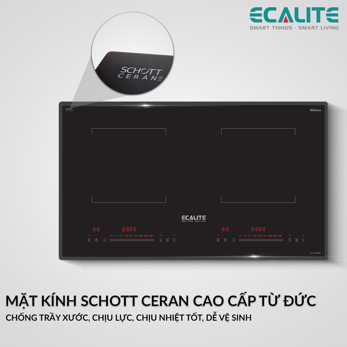 BepXANH.com | Giới thiệu bếp từ Ecalite EL-MS2999II - 2 vùng nấu, kính Schott Ceran