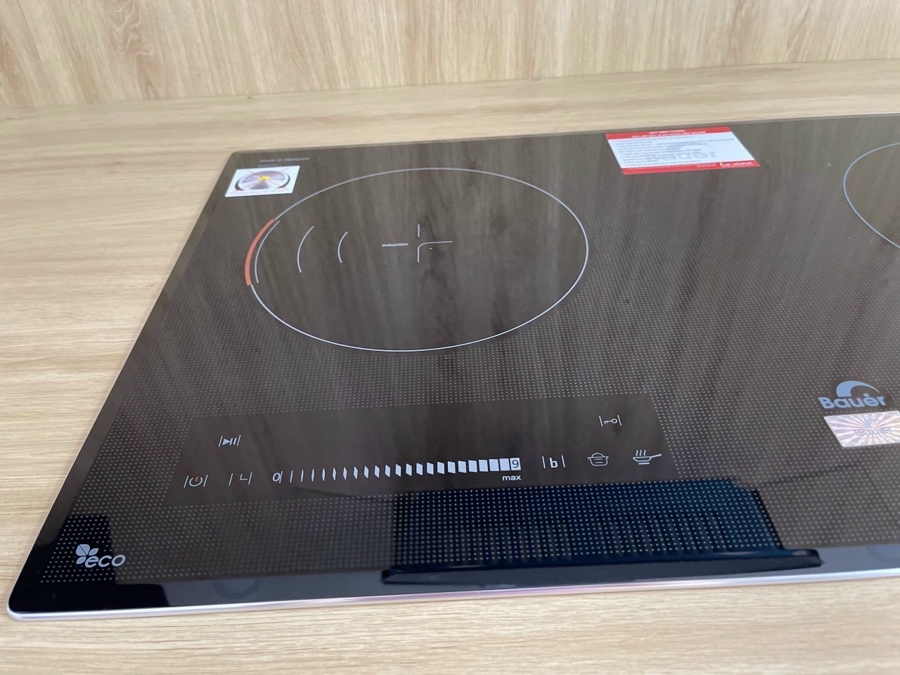 - Bếp từ 2 vùng nấu - Mặt kính Keramik vát 4 cạnh, bo viên Aluminum. - Điều khiển 2 phím Slider với 9 mức công suất. - Hẹn giờ độc lập cho 2 vùng