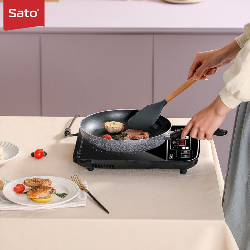Thiết kế nhỏ gọn, công suất lớn Bếp Từ Đơn Sato STB - 201 có thiết kế nhỏ gọn, linh hoạt với màu đen hoa văn bắt mắt, thích hợp cho những bữa liên hoan