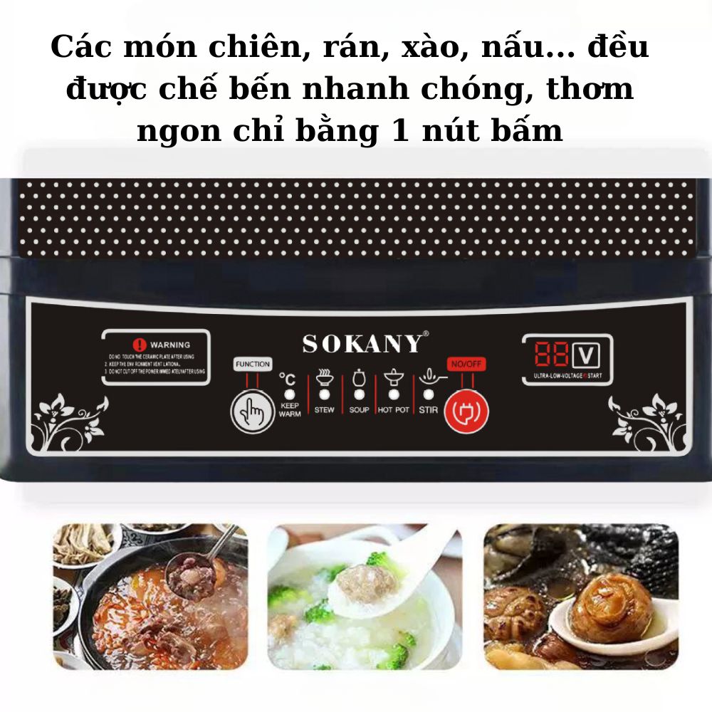 • Bếp điện từ SOKANY chính là sự lựa chọn lý tưởng cho những ai tìm kiếm một thiết bị nấu ăn tiện lợi và hiệu quả.