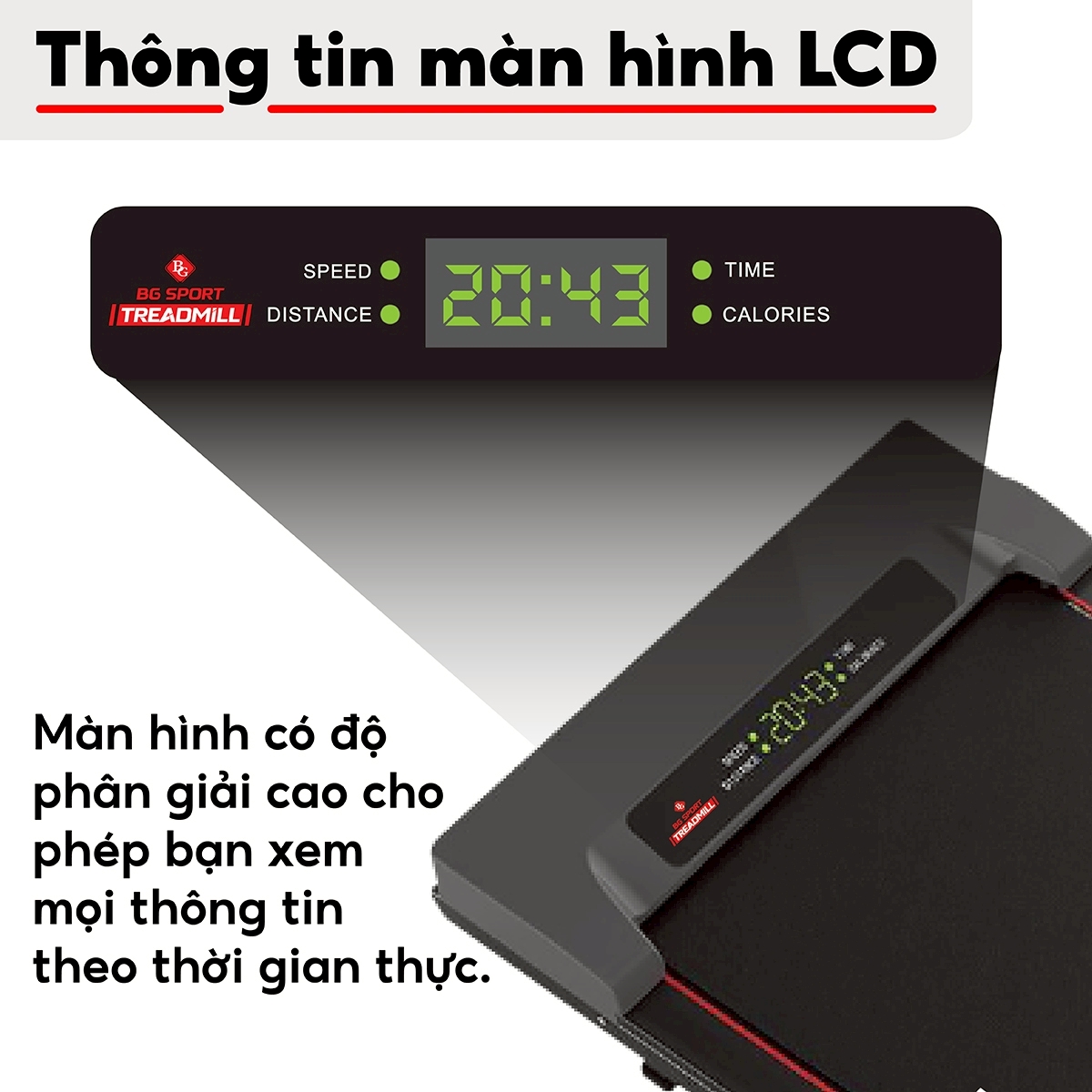 MÁY CHẠY BỘ BK-8000 PRO - BỀN BỈ SỨC SỐNG MỖI NGÀY ️ Thiết kế sang trọng và hiện đại phù hợp với mọi không gian ️ Khung sườn chắc chắn đảm bảo độ an toàn cao ️ Màn hình LCD hiển thị các thông số đo thời gian, quãng đường, vận tốc và calories ️ Thảm chạy Diamond nhiều lớp chống ồn và trơn trượt, rộng rãi lên đến 1260x420 mm ️ Chế độ nâng dốc tự động lên đến 18% giúp tăng hiệu quả luyện tập ️ 12 chương trình luyện tập đa dạng để lựa chọn ️ Sở hữu tay cầm được tích hợp chương trình cảm biến nhịp tim ️ Động cơ mạnh mẽ và vượt trội với khả năng chạy tốc độ cao lên đến 14km/h ️ Trang bị thanh gập bụng và đai massage giúp tối ưu hiệu quả tập luyện ️ Hệ thống giảm xóc thông minh giúp giảm chấn thương trong quá trình tập ️ Nghe nhạc giải trí với âm thanh sống động: jack 3.5 và Bluetooth ️ Bàn phím cơ siêu bền dễ dàng sử dụng THÔNG SỐ KỸ THUẬT - Model: BK-8000 Pro - Khối lượng: 71/81 kg - Kích thước đóng thùng: 1600x755x310mm - Kích thước sử dụng: 1620x780x1250mm - Kích thước xếp gọn: 1190x780x1240mm - Màn hình: LCD - Điện áp: 220V, 50-60Hz -