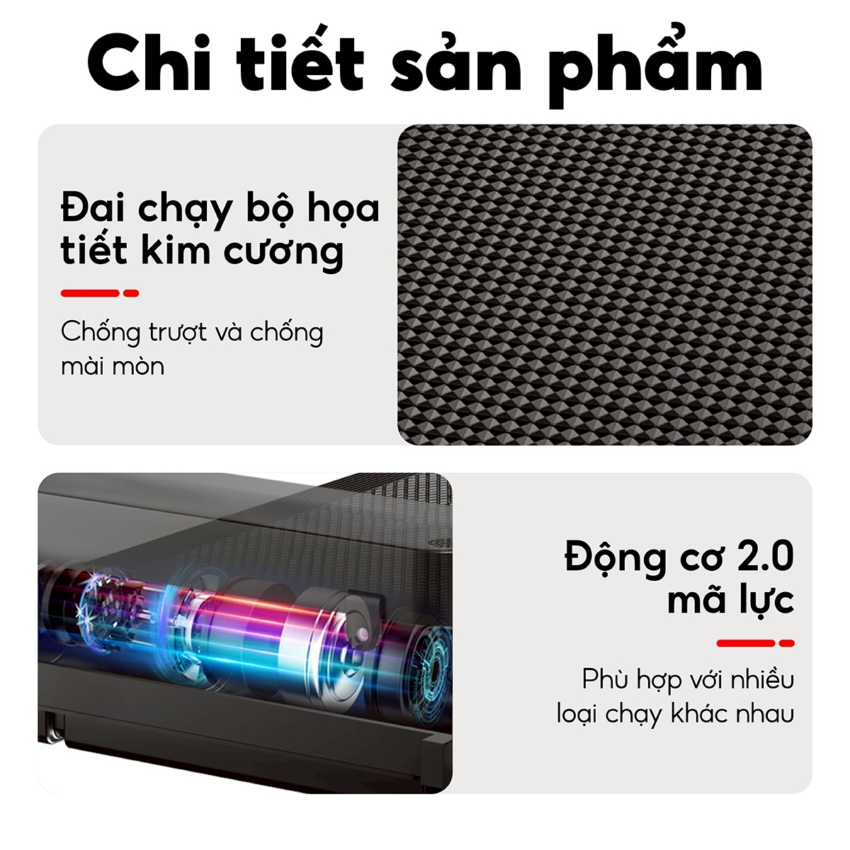 RUN YOUR TRAIL AT HOME – CHẠY BỘ ĐỊA HÌNH TẠI NHÀ TÍNH NĂNG - Motor mạnh mẽ 3.25 HP chuẩn phòng gym cao cấp và sàn chạy cực rộng cho những bài tập chạy
