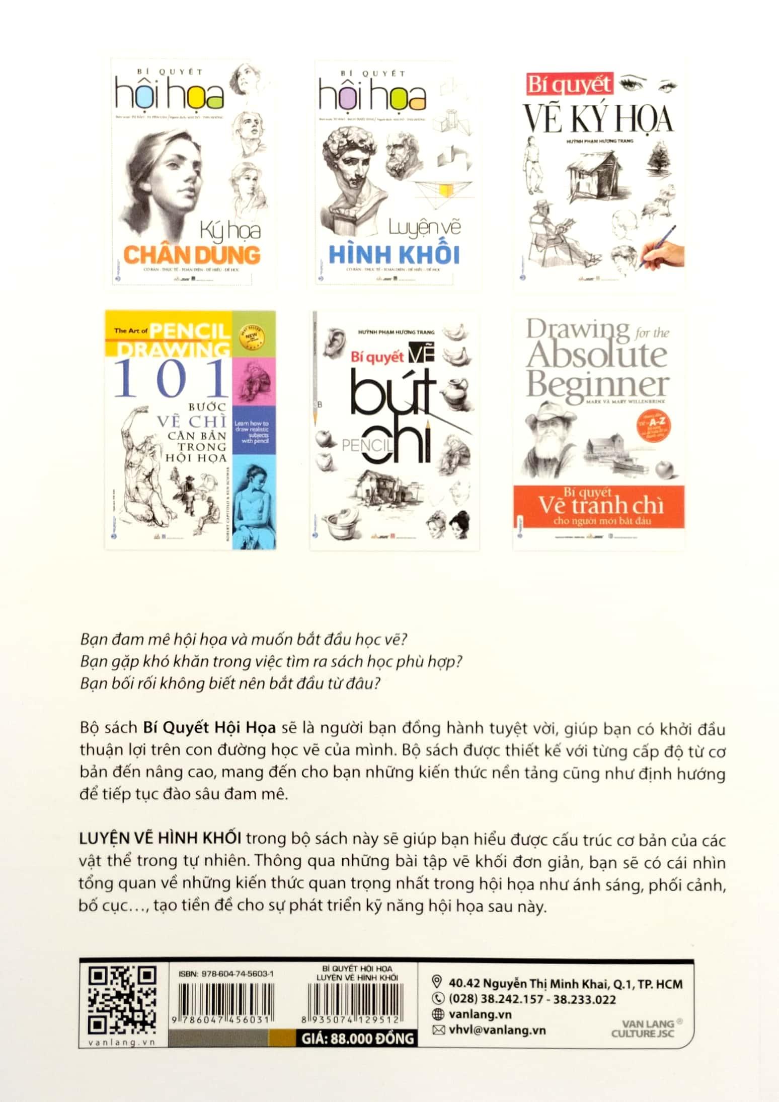 LUYỆN VẼ HÌNH KHỐI trong bộ sách này sẽ giúp bạn hiểu được cấu trúc cơ bản của các vật thể trong tự nhiên. Thông qua những bài tập vẽ khối đơn giản, bạn sẽ có cái nhìn tổng quan về những kiến thức quan trọng nhất trong hội họa như ánh sáng, phối cảnh, bố cục…, tạo tiền đề cho sự phát triển kỹ năng hội họa sau này.