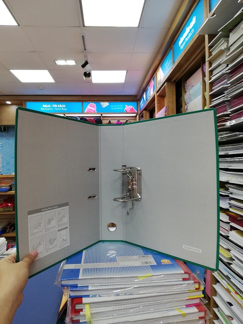 Bìa còng KKY F4 Xanh dương 305B (9cm) Bìa được làm từ carton cứng, có độ bền cao, chịu va đập tốt. Vải PVC bọc ngoài mềm mại, không thấm nước, dễ dàng làm sạch lau chùi. Sản phẩm có kích cỡ bằng khổ giấy FC-S, phù hợp với đa số các loại giấy tờ hiện nay, là sản phẩm lý tưởng để lưu trữ hồ sơ, giấy tờ quan trọng không bị nhăn, nhàu. Gáy hộp rộng 9cm, có thể đựng được tối đa 650 tờ. Bìa còng có khóa càng là kim loại phủ niken sáng bóng, chống gỉ sét, chống bám bụi, có thể đóng mở nhiều lần để thêm bớt tài liệu mà không bị cong vênh. Sản phẩm được sản xuất trên dây chuyền công nghệ hiện đại, không chứa các hóa chất độc hại, an toàn cho sức khỏe người sử dụng. Bìa còng đựng tài liệu Kokuyo 305B khổ FC-S dày 9cm thích hợp cho môi trường văn phòng, công sở .