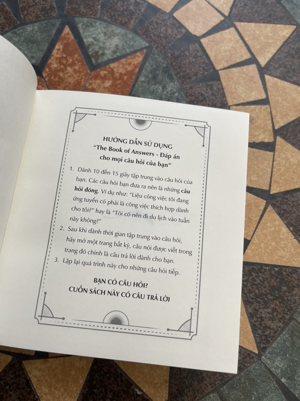 - Sau khi dành thời gian tập trung vào câu hỏi, hãy mở một trang bất kỳ, câu nói được viết trong trang đó chính là câu trả lời dành cho bạn.