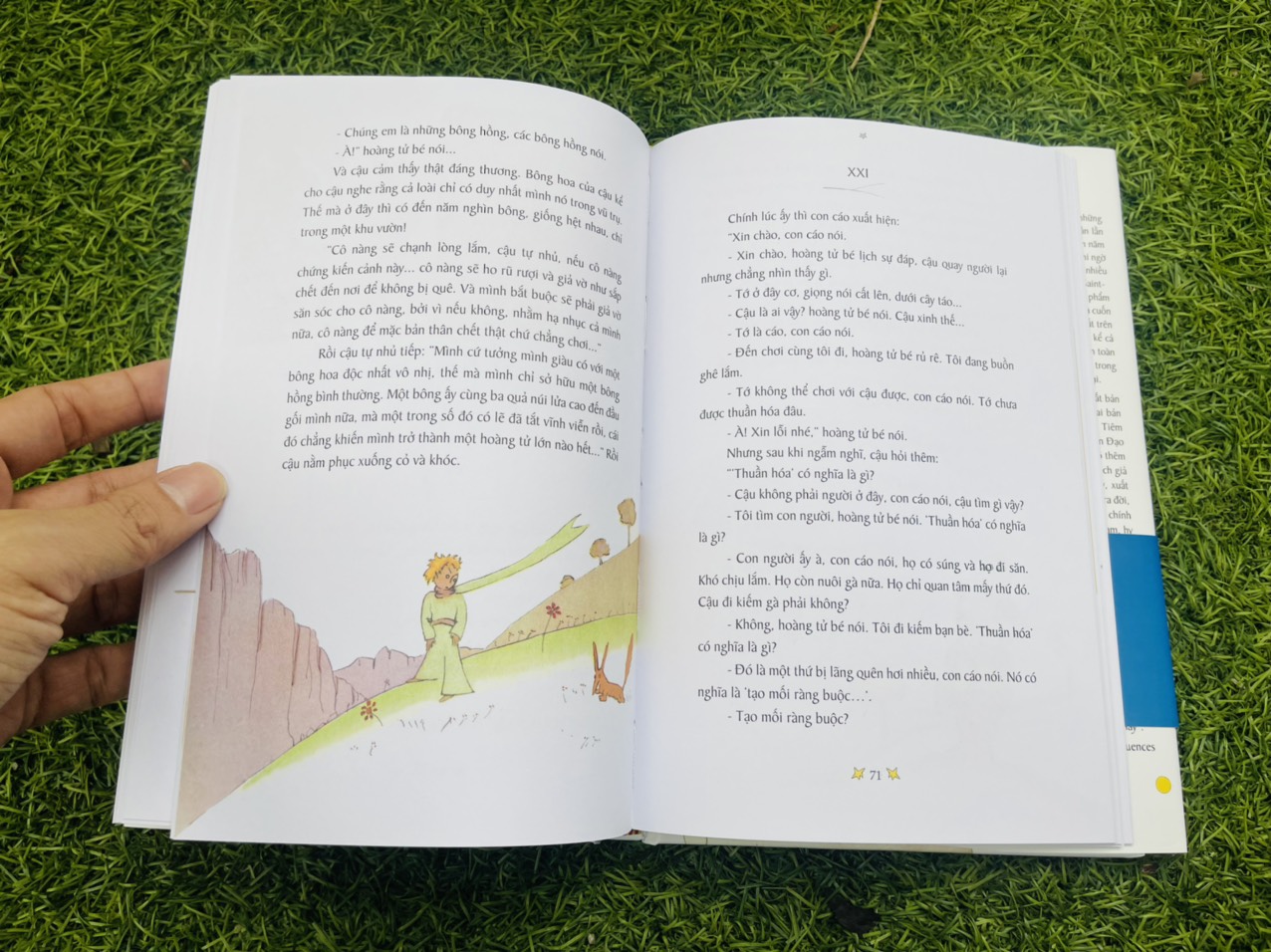 Cái tấm bìa trăng trắng này – tờ obi này xanh xanh này – trở thành cuốn sách bán mãi không ngừng của Nhã Nam (cùng với Toto-chan, Con mèo dạy hải âu bay, Chiến binh cầu vồ). Cuốn sách mãi quen thuộc với tranh minh họa của chính Antoine de Saint-Exupéry cùng bản dịch mới của Trác Phong. Và nay ta có ấn bản bìa cứng kỷ niệm đẹp đẽ cho nó.