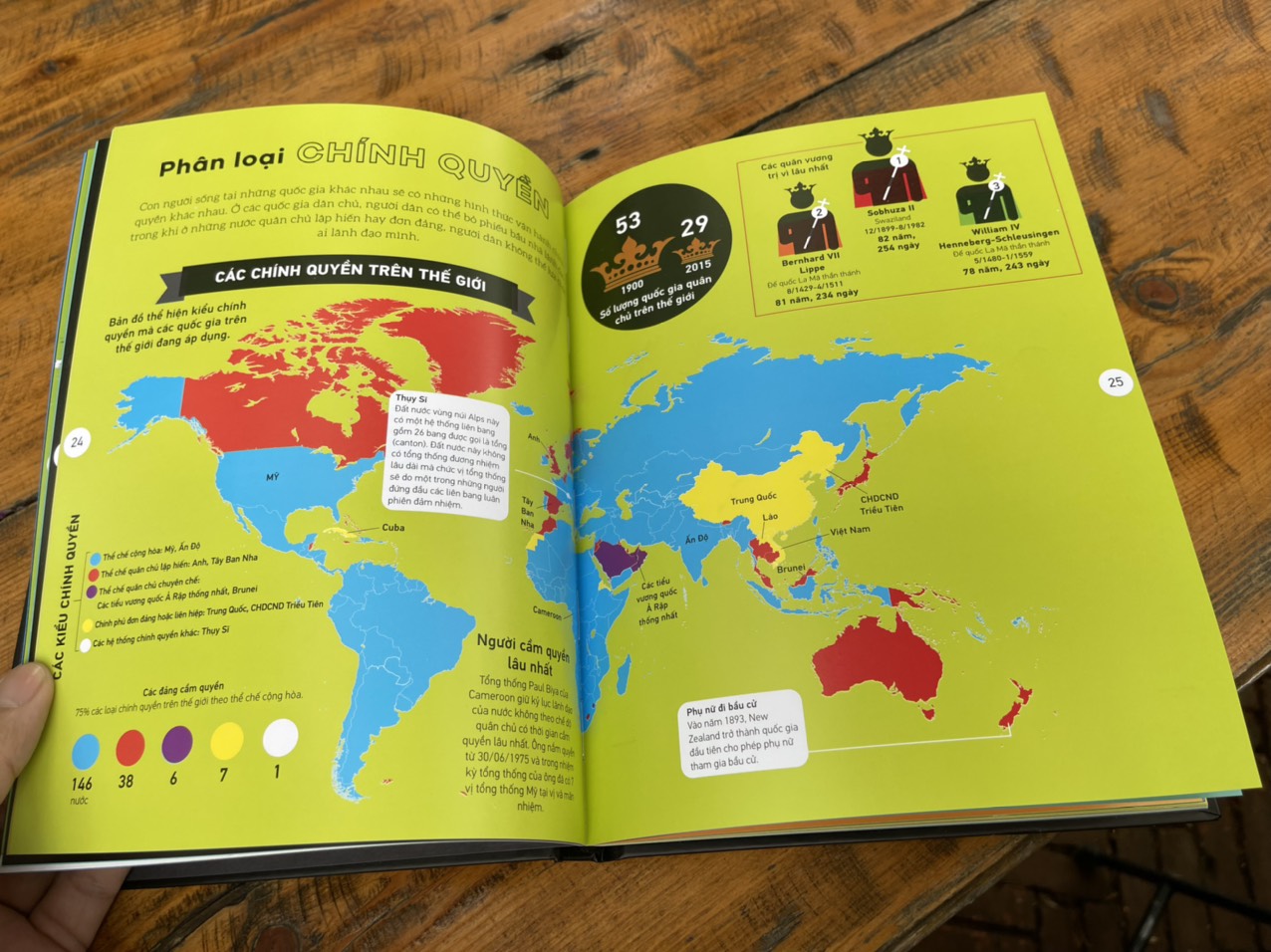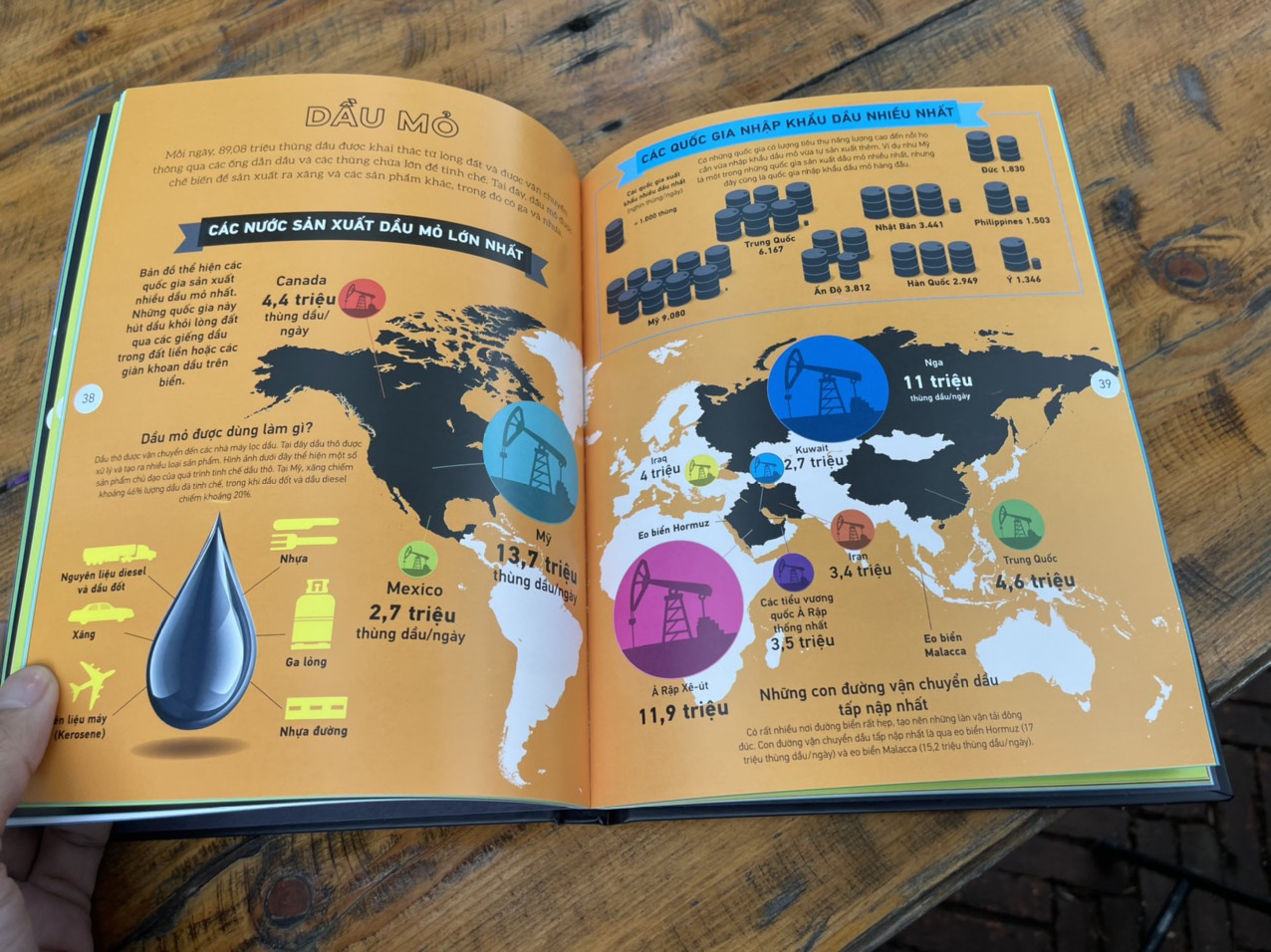 Mua tại TiktokCuốn sách này bao gồm 50 tấm bản đồ, biểu diễn các số liệu và thông tin độc đáo về hầu như mọi thứ bạn muốn biết về thế giới của chúng ta. Từ những người đoạt giải Nobel đến những loài đang gặp nguy hiểm, những ngọn núi lửa đang hoạt động đến những nền văn minh cổ xưa, nguồn gốc loài người, thế giới tự nhiên, điện ảnh, thể những tấm bản đồ hình họa trong cuốn Atlas vạn vật này mang tới nhiều thông tin lý thú một cách thật hoành tráng và dễ hình dung!