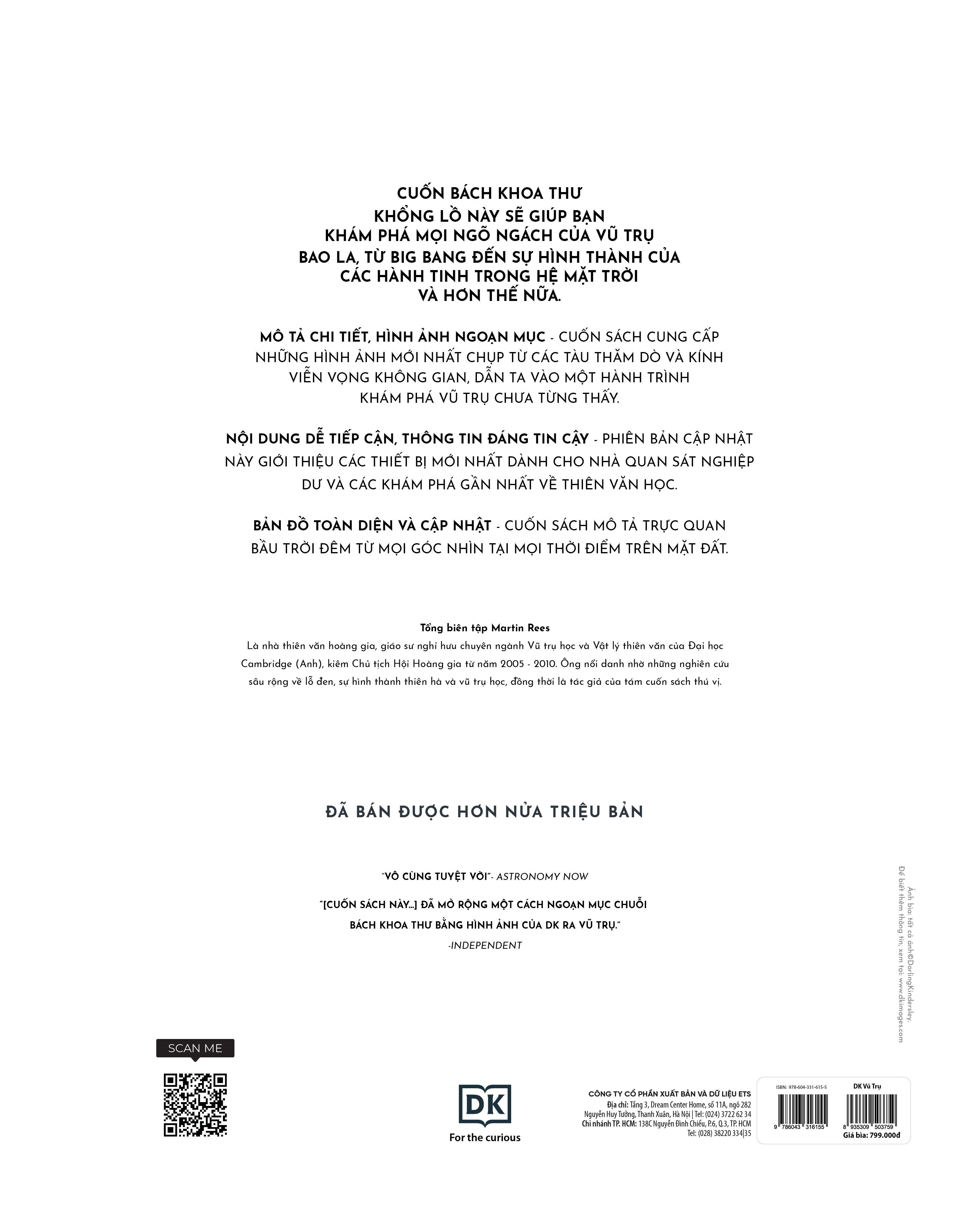 Với phiên bản tái bản có chỉnh sửa và cập nhật đầy đủ nhất này, cuốn sách Thuyết minh trực quan nhất về Vũ trụ ăn khách nhất của DK sẽ giúp chúng ta khám phá mọi ngõ ngách của vũ trụ bao la, từ Big Bang đến sự hình thành của các hành tinh trong Hệ Mặt Trời và hơn thế nữa.