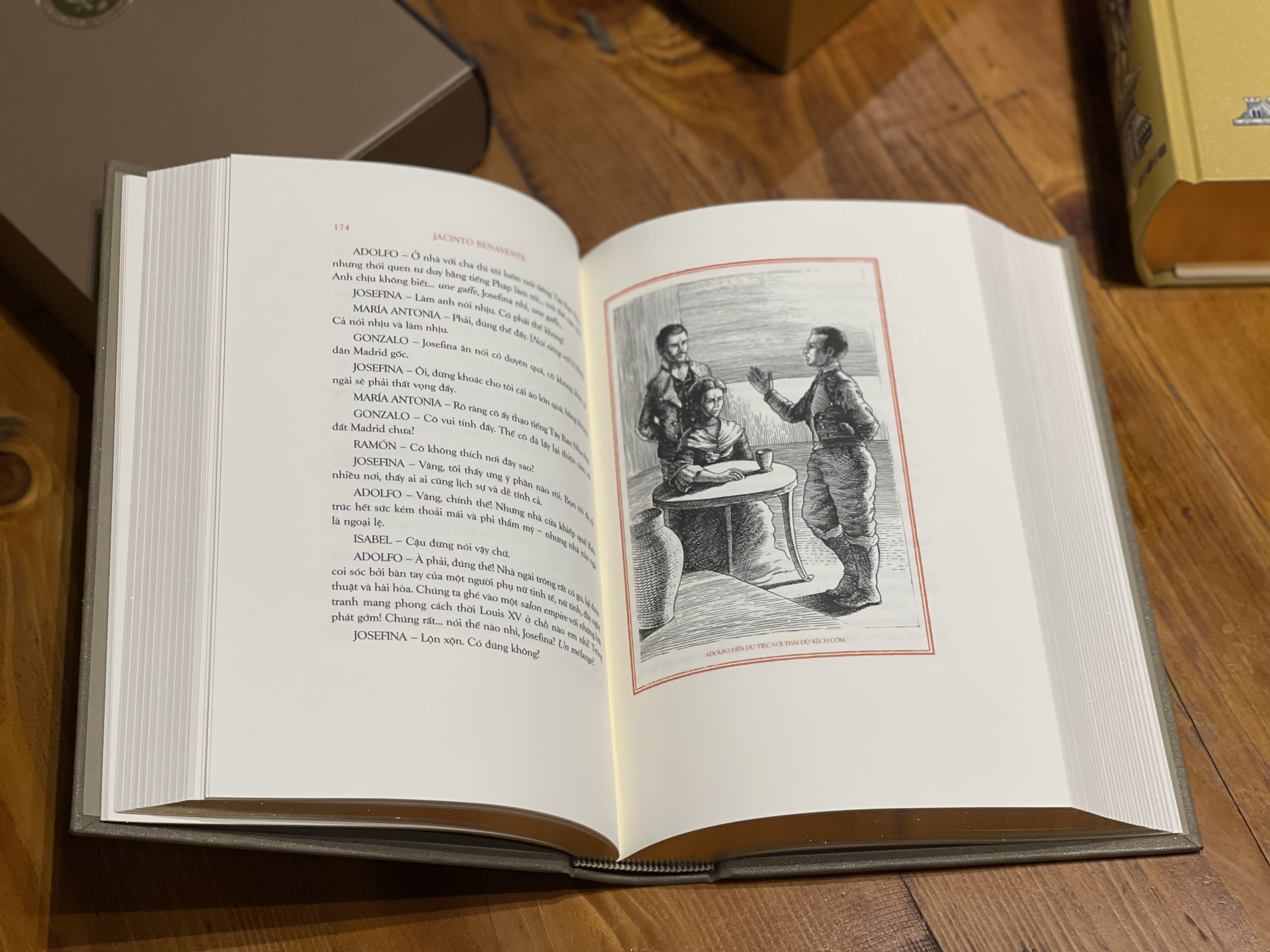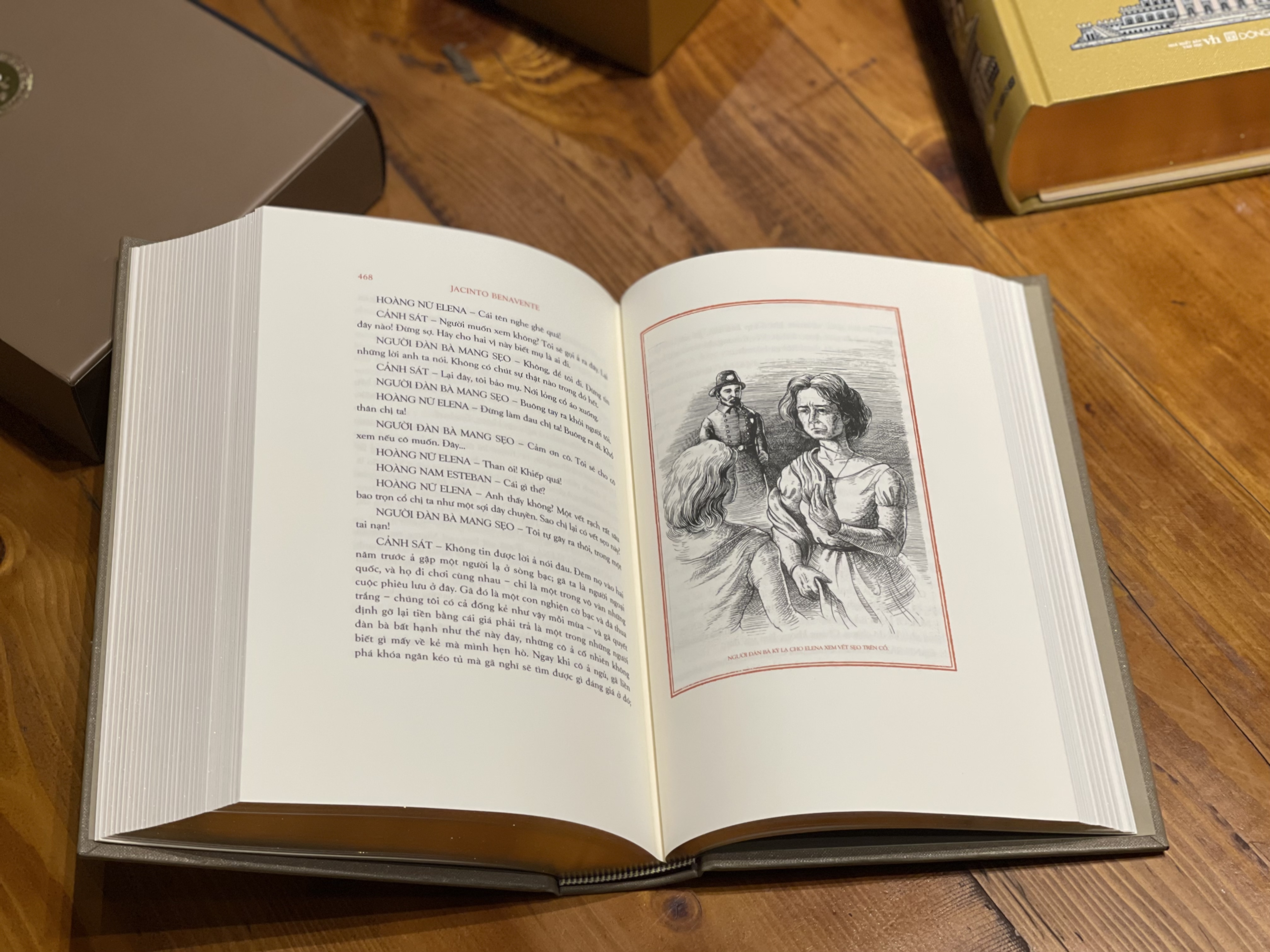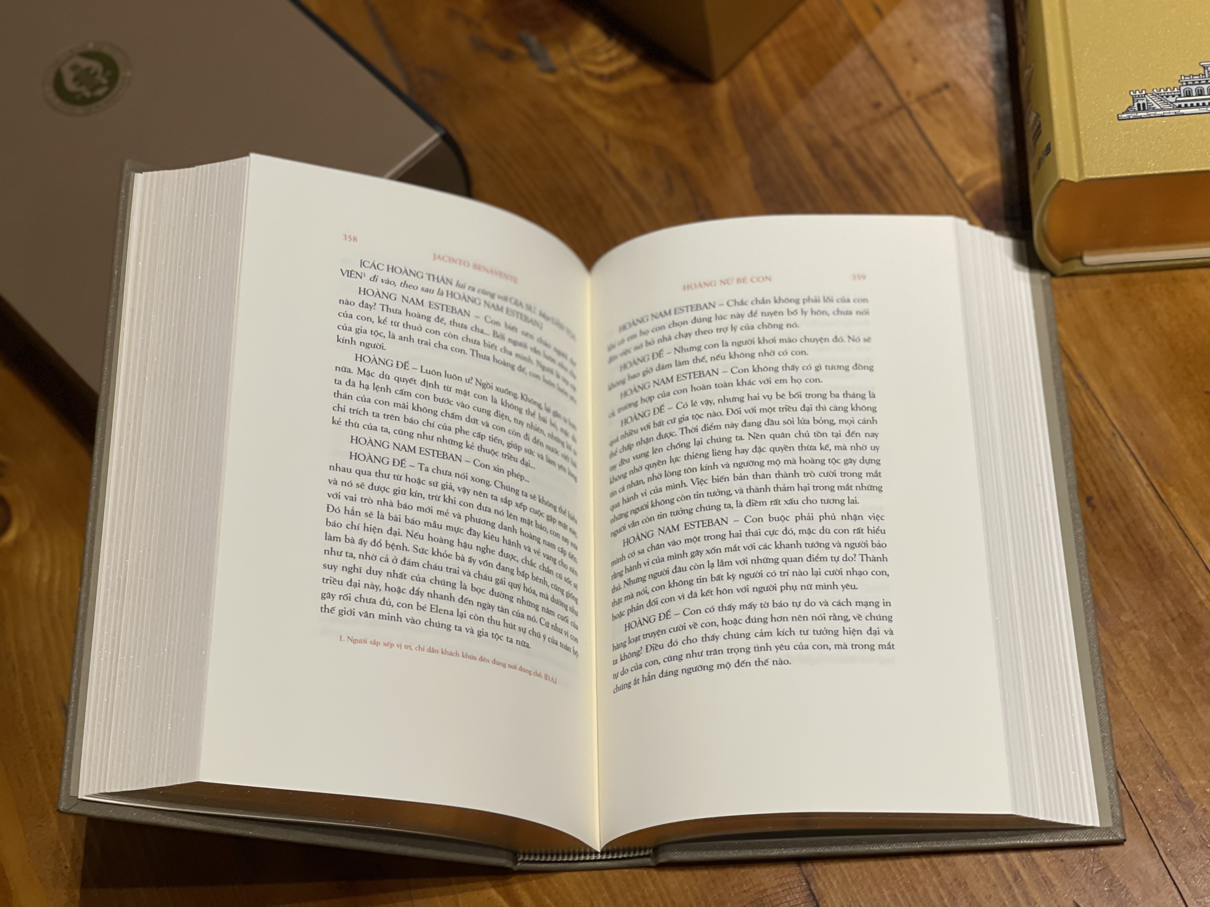 Tuyển tập kịch Jacinto Benavente gồm năm vở: Thống đốc phu nhân, Đóa hồng giữa thu, Những ràng buộc lợi ích, Hoàng nữ bé con, Đứa con trái duyên. Năm vở kịch trong tuyển tập này đều là các vở được sáng tác trong thời hoàng kim của ông, đặc biệt bao gồm hai vở hay nhất là Những ràng buộc lợi ích (Los intereses creados) và Đứa con trái duyên (La malquerida). Năm vở đều được dịch từ tiếng Anh, dựa theo tuyển tập Plays by Jacinto Benavente, bản dịch của John Garrett Underhill, nhà xuất bản Charles Scribner's Sons, năm 1917; khi dịch có tham khảo nguyên tác tiếng Tây Ban Nha.