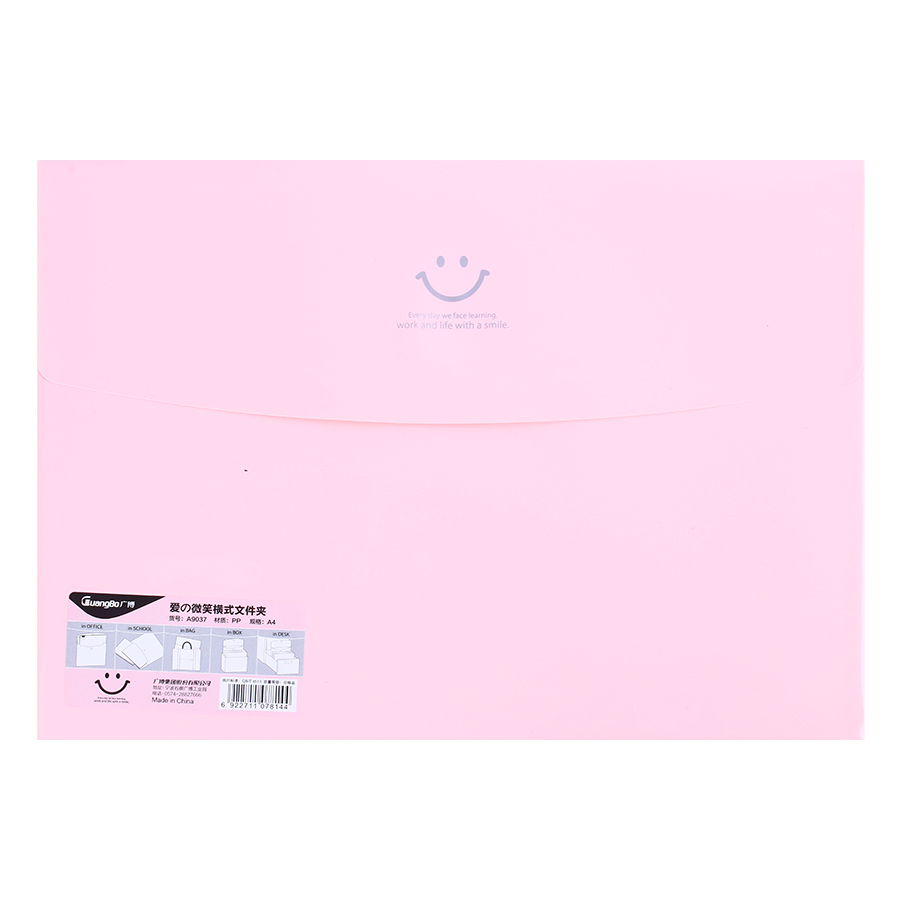 - Bìa Nút Dán Guangbo A4 9037 (2 Cái / Xấp) - Hồng được làm bằng nhựa PP chắc chắn, chống thấm nước, cho độ bền cao, dễ dàng lau chùi khi bị bám bẩn. - Bìa