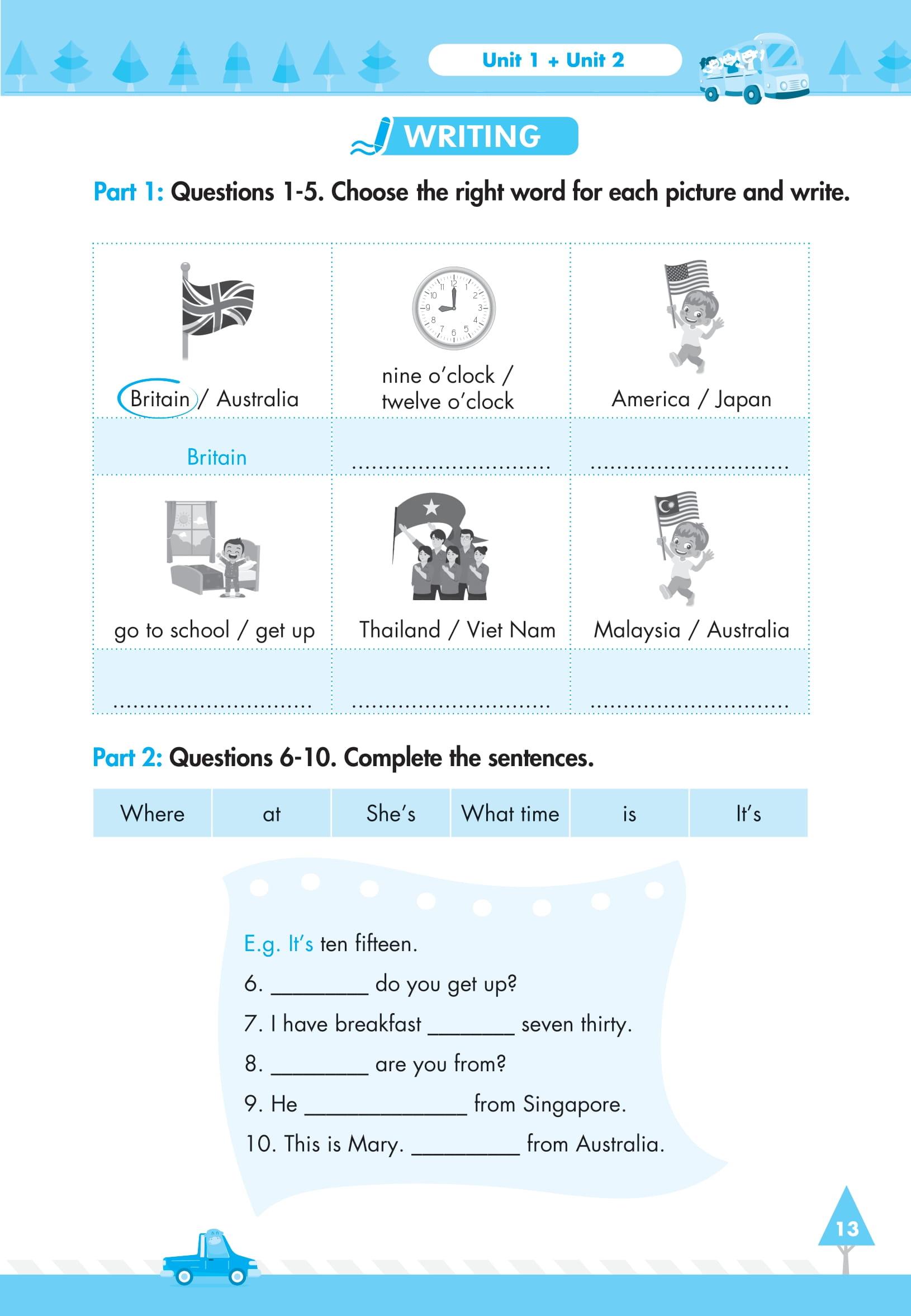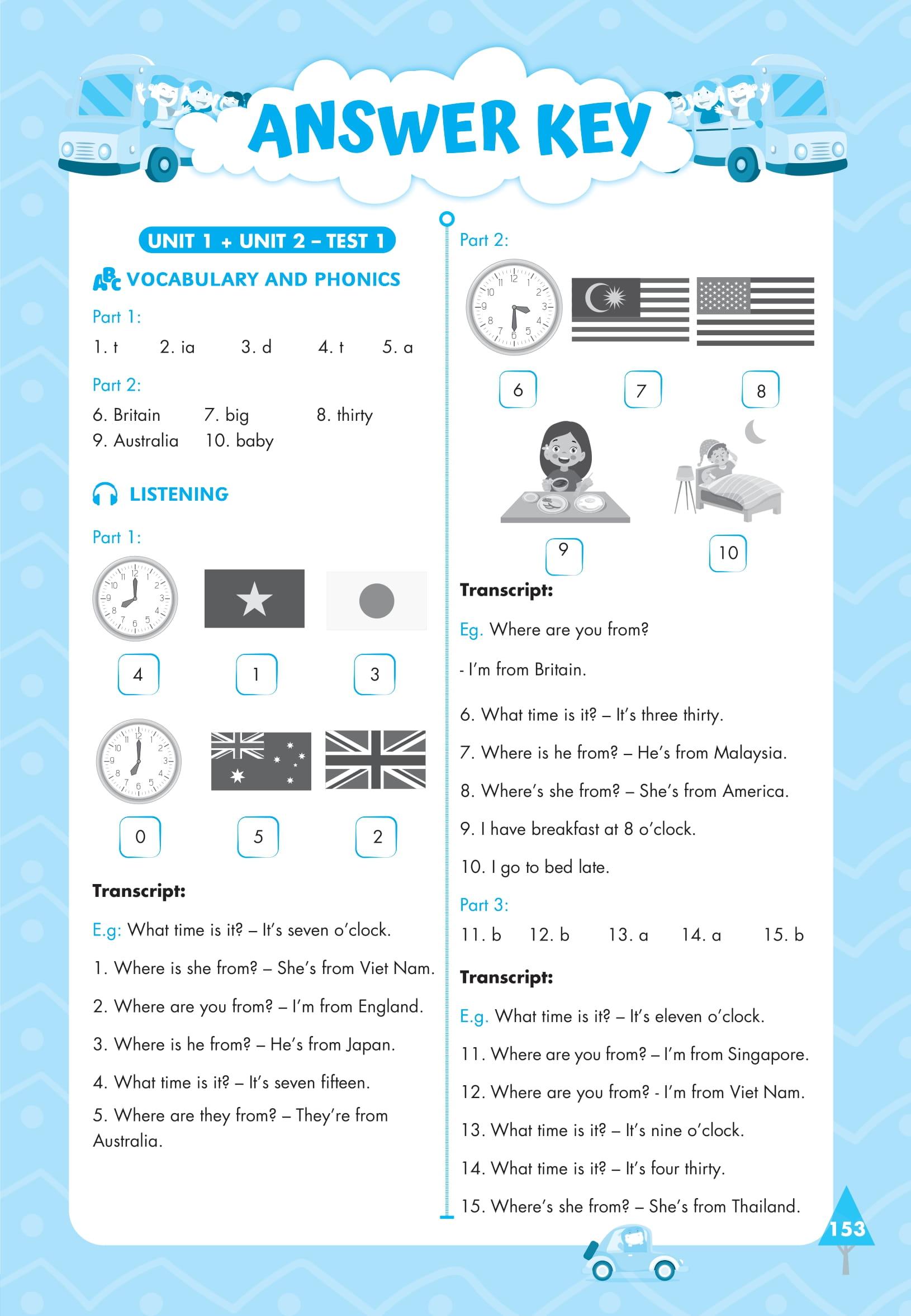 Sau 10 bài học sẽ là bài kiểm tra cuối học kỳ để kiểm tra lại toàn bộ các kiến thức từ vựng và cấu trúc các em đã học sau một kỳ học.