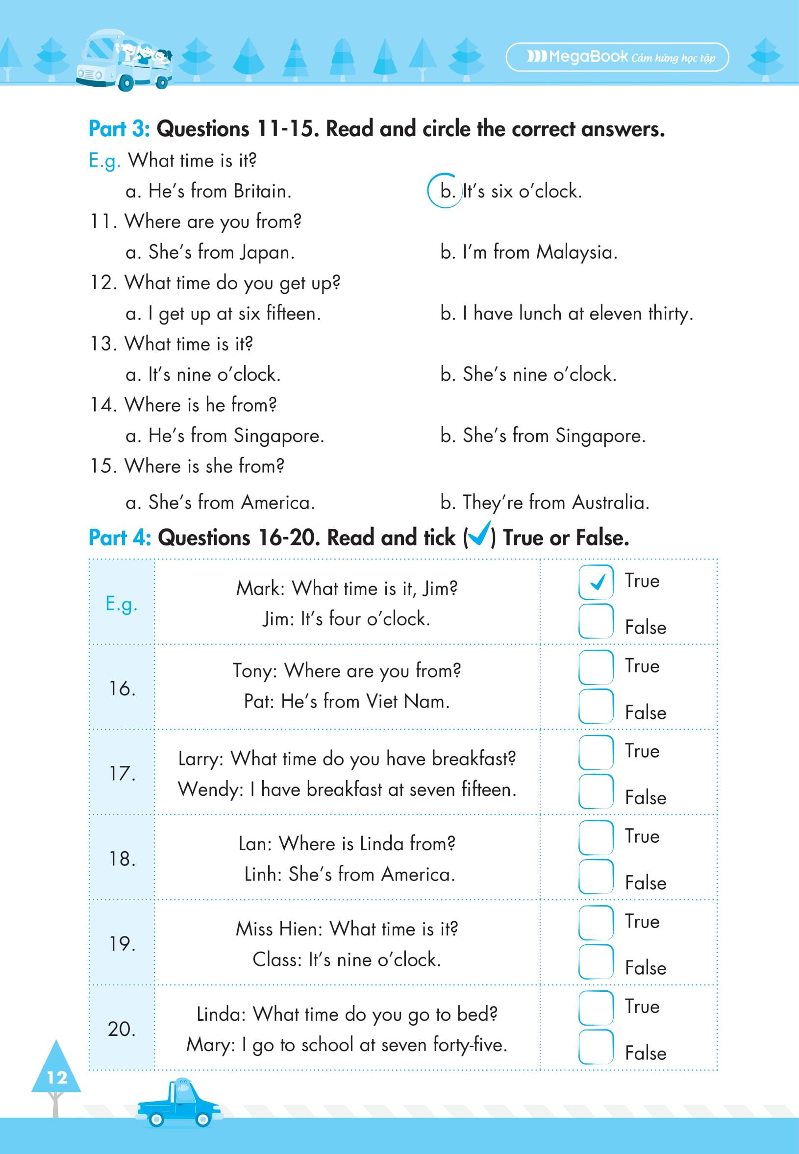 Tất cả các bài kiểm tra đều được thiết kế theo thông tư mới nhất của Bộ GD&ĐT, vận dụng cả 4 kỹ năng nghe – nói – đọc – viết, thầy cô giáo cũng như bố mẹ sẽ dễ dàng kiểm tra, đánh giá được năng lực của các con.