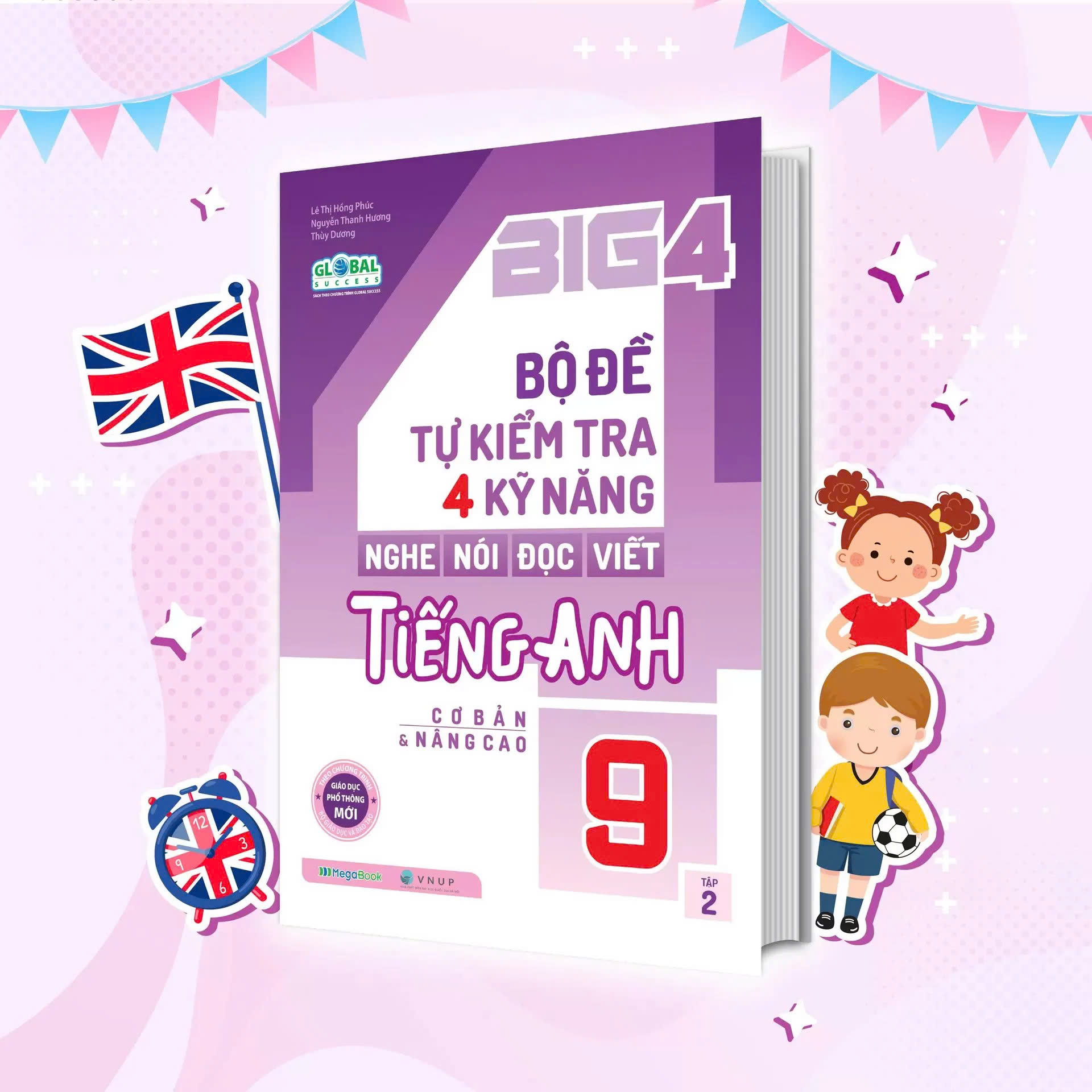 Big 4 Bộ Đề Tự Kiểm Tra 4 Kỹ Năng Nghe – Nói – Đọc – Viết (Cơ Bản và Nâng Cao) Tiếng Anh Lớp 9 Tập 2 viết theo chuẩn khung chương trình mới của Bộ Giáo Dục và Đào Tạo giúp các em học sinh lớp 9 củng cố và phát triển toàn diện các kỹ năng: Nghe – Nói – Đọc – Viết Tiếng Anh.