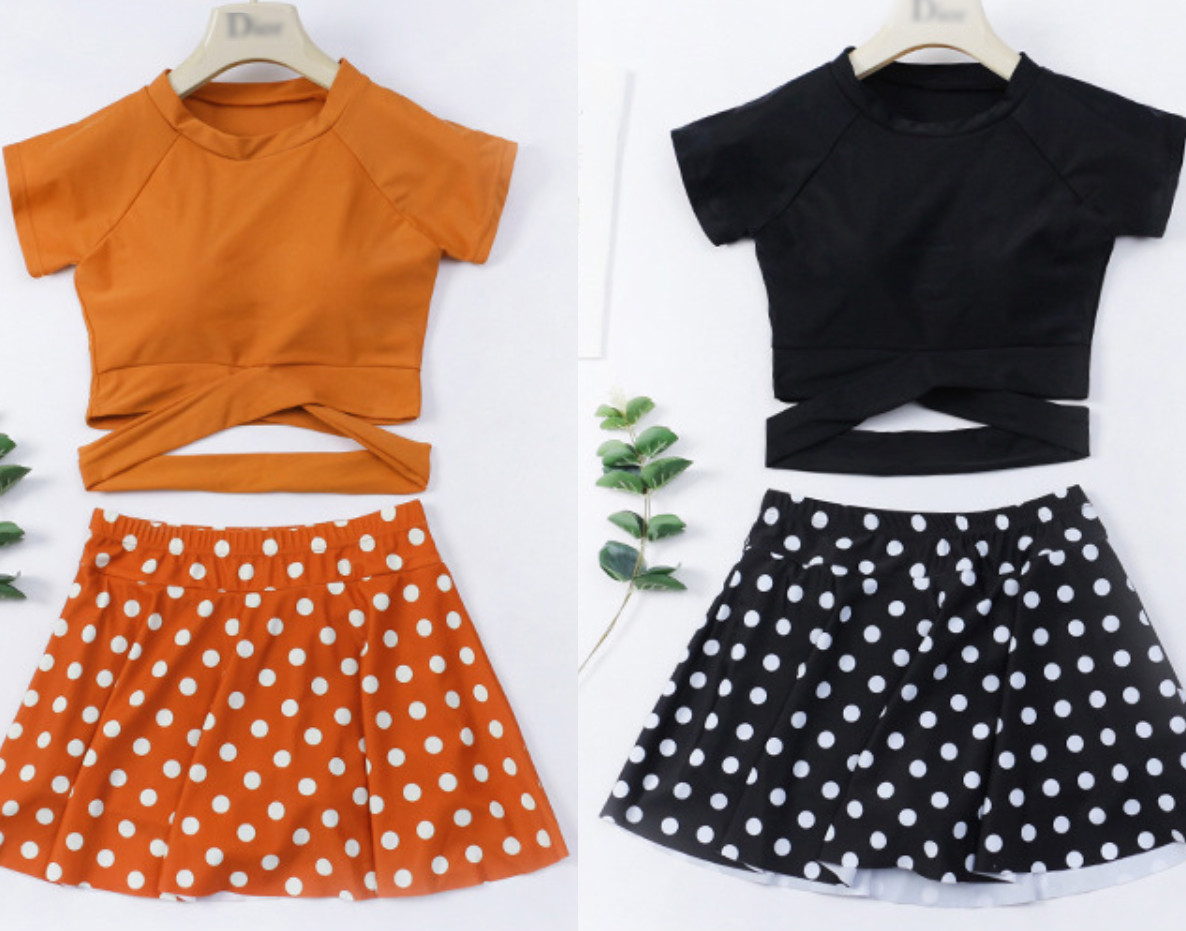 Bộ đồ bơi croptop tay dài phối váy ngắn, trẻ trung, nhẹ nhàng đi biển