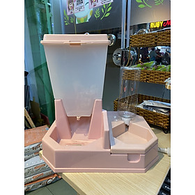 Bát ăn tự động cho chó mèo có thiết kế thông minh, một bên là bát ăn kèm bình đựng hạt và bên là bát đựng nước có gắn bình