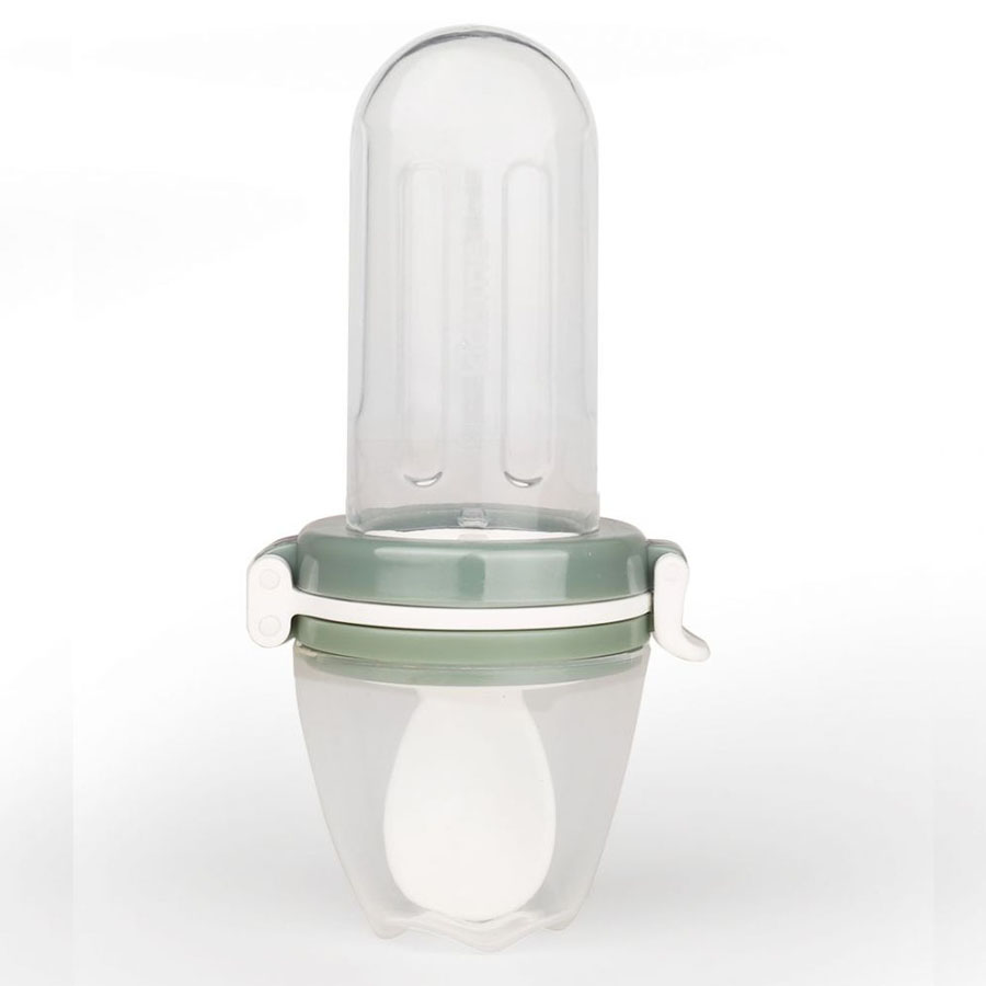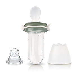 - Giúp cho trẻ trên bốn tháng tuổi chủ động thức ăn lỏng với một đầu muỗng cùng ti nhai có lỗ chữ thập và thức ăn sệt với ti nhai có lỗ tròn như bột, cháo, súp. Cho thức ăn vào bình bóp, đóng chốt an toàn và cho Bé ăn bằng cách tự bóp vào bình.